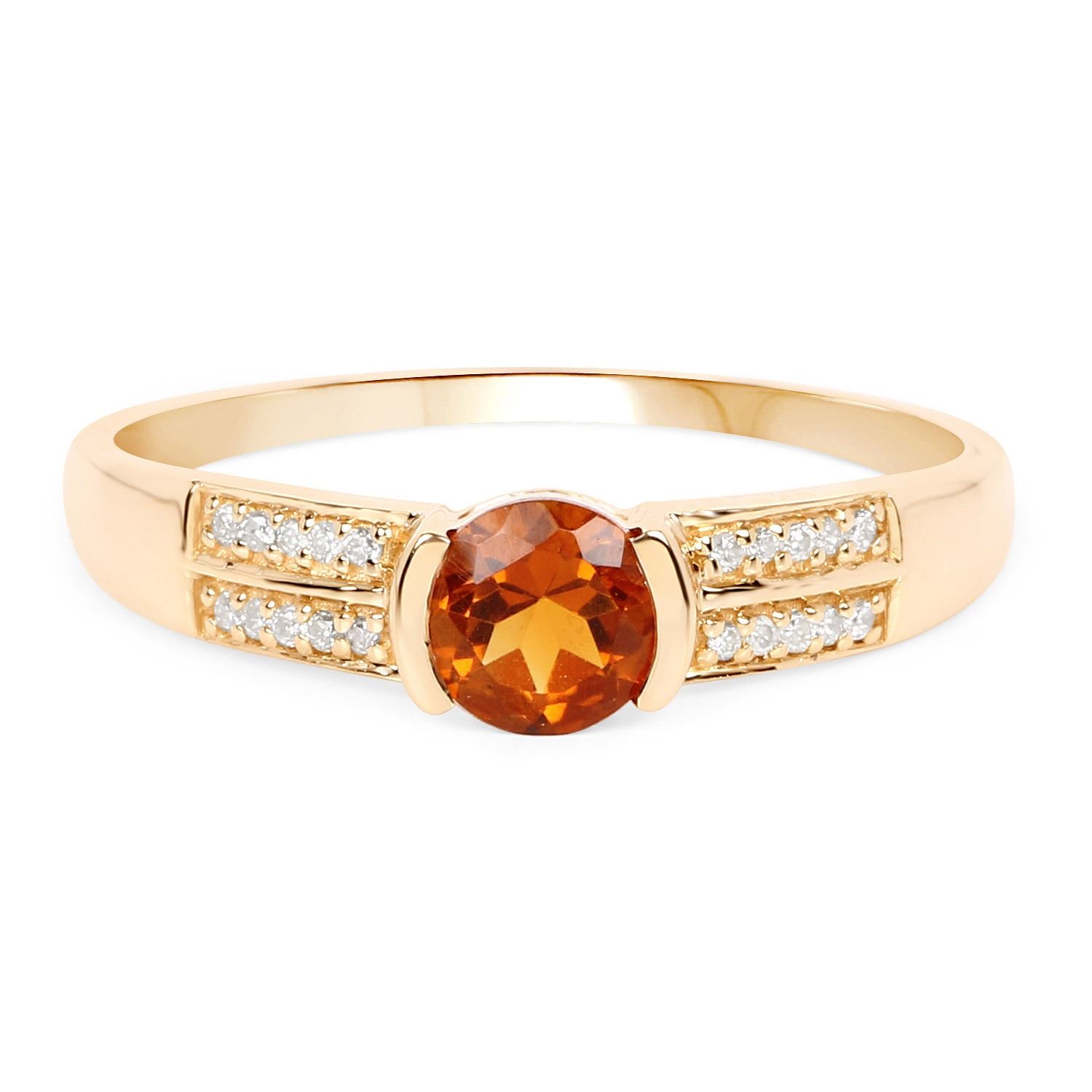 Citrine Round/5.00mm - 1/0.45 ctw Natural Heat Treated N + White Diamond Round/0.80mm - 20/0.06 ctw Natural Not Treated N I I1-I2. Ring size 7. Total weight of 2.23 grams.