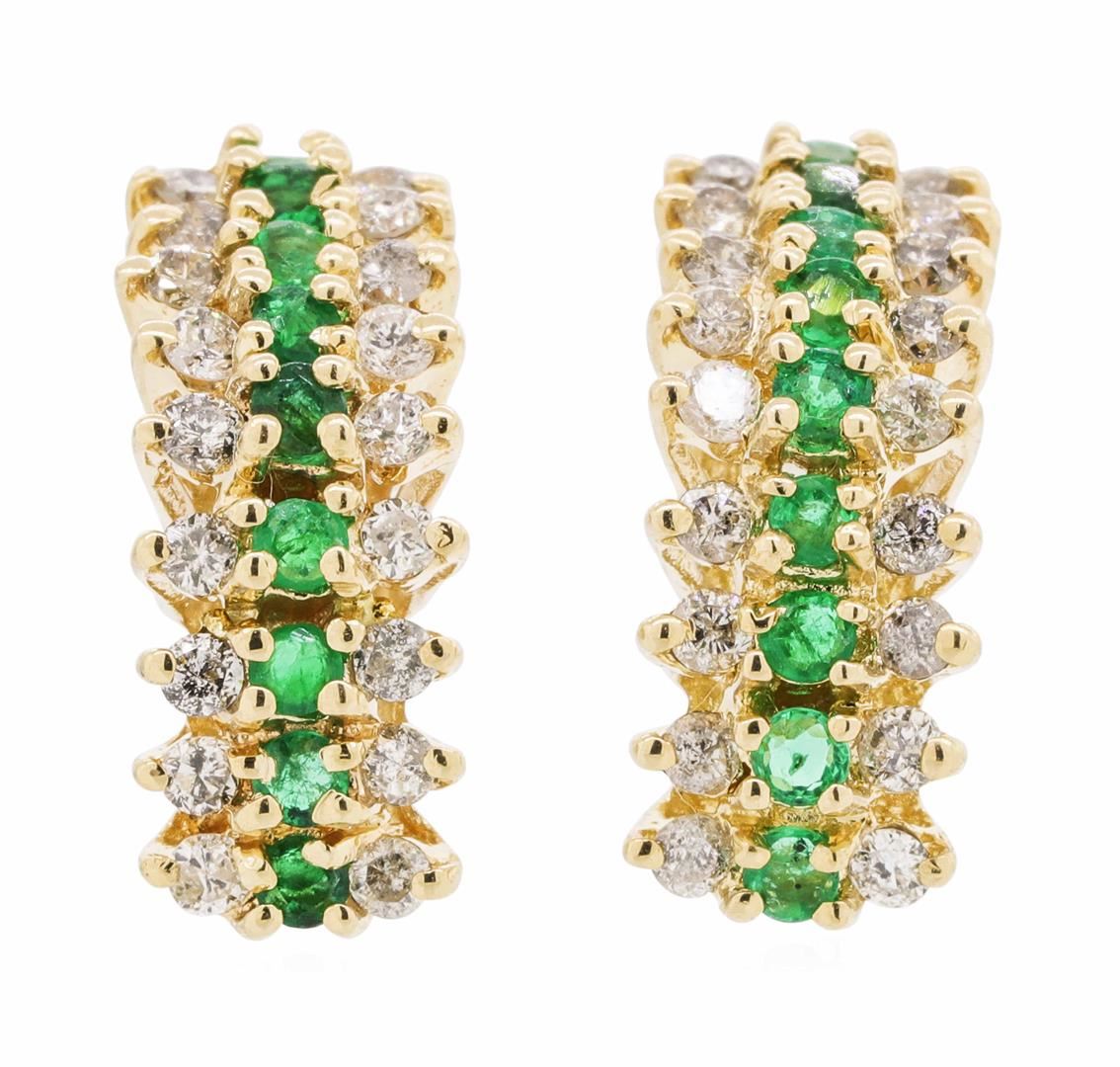 One pair of lady's earrings featuring: 14KT yellow gold weighing 4.2 grams containing diamonds weighing 0.54ctw and emeralds weighing 0.50ctw.