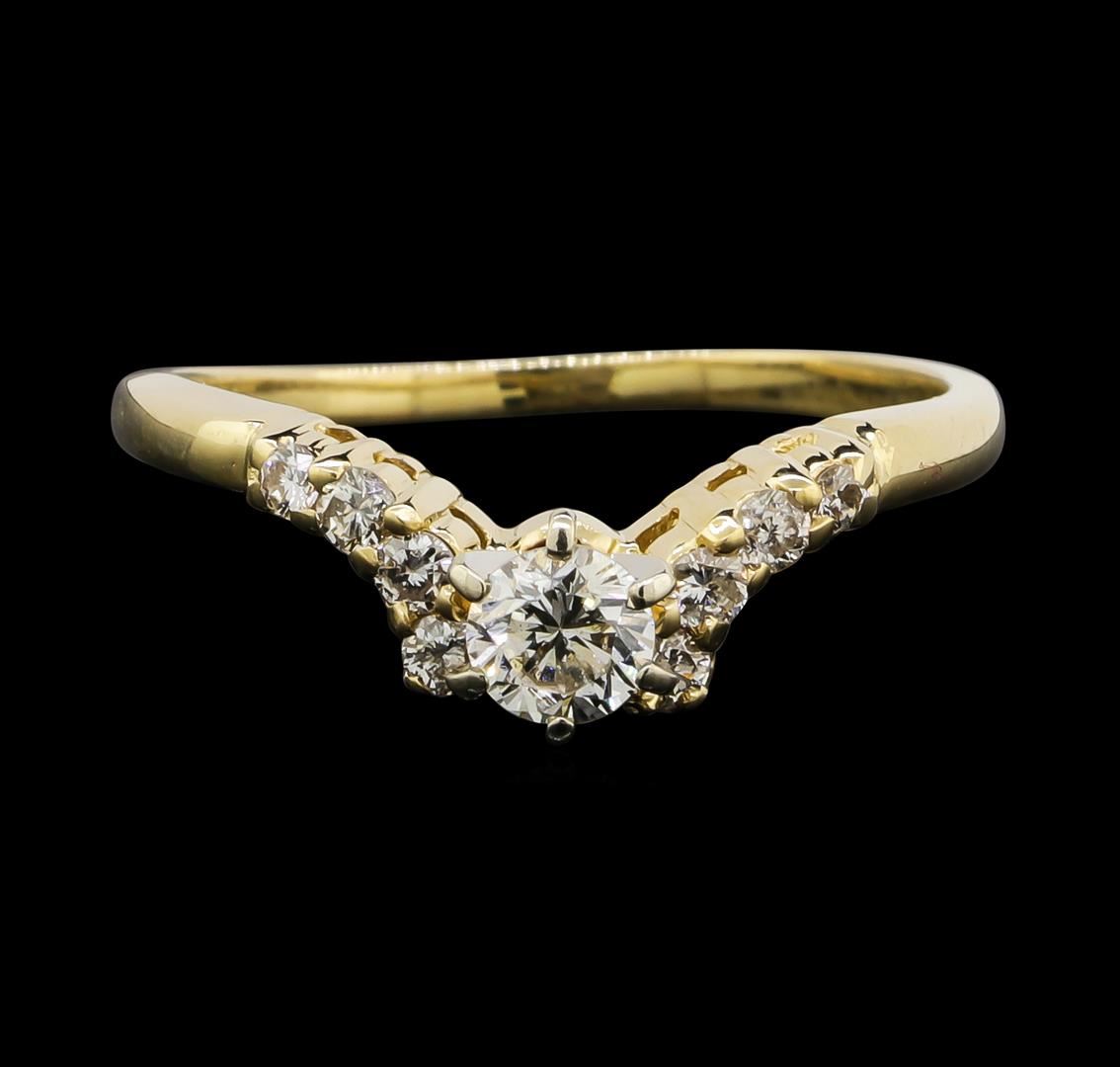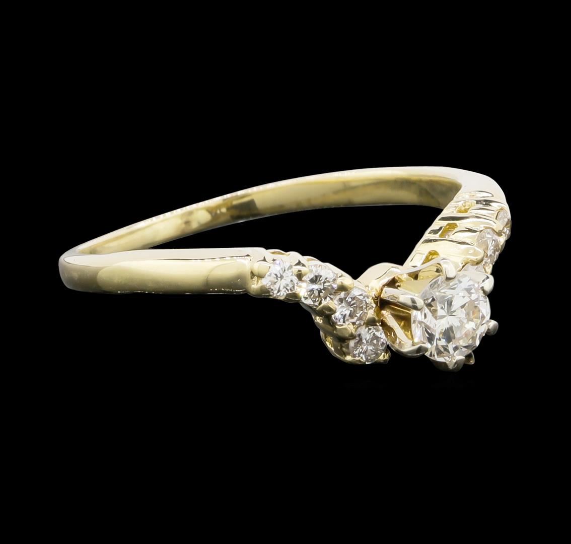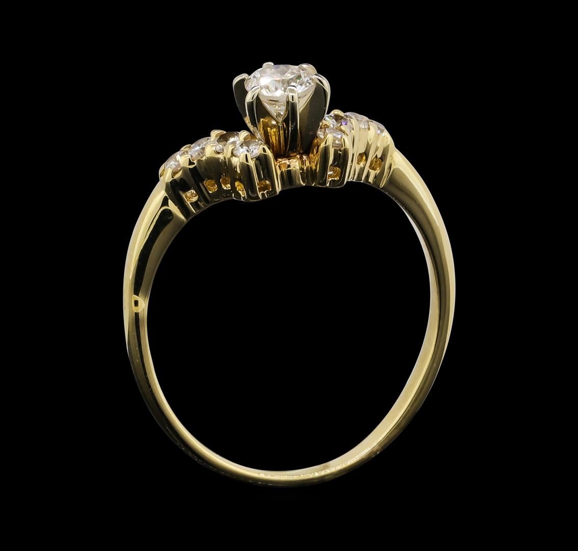 One 14KT Yellow Gold 0.55ctw Diamond Ring. Total weight of diamonds is 0.55cts. Total weight of ring is 2.64 grams.
