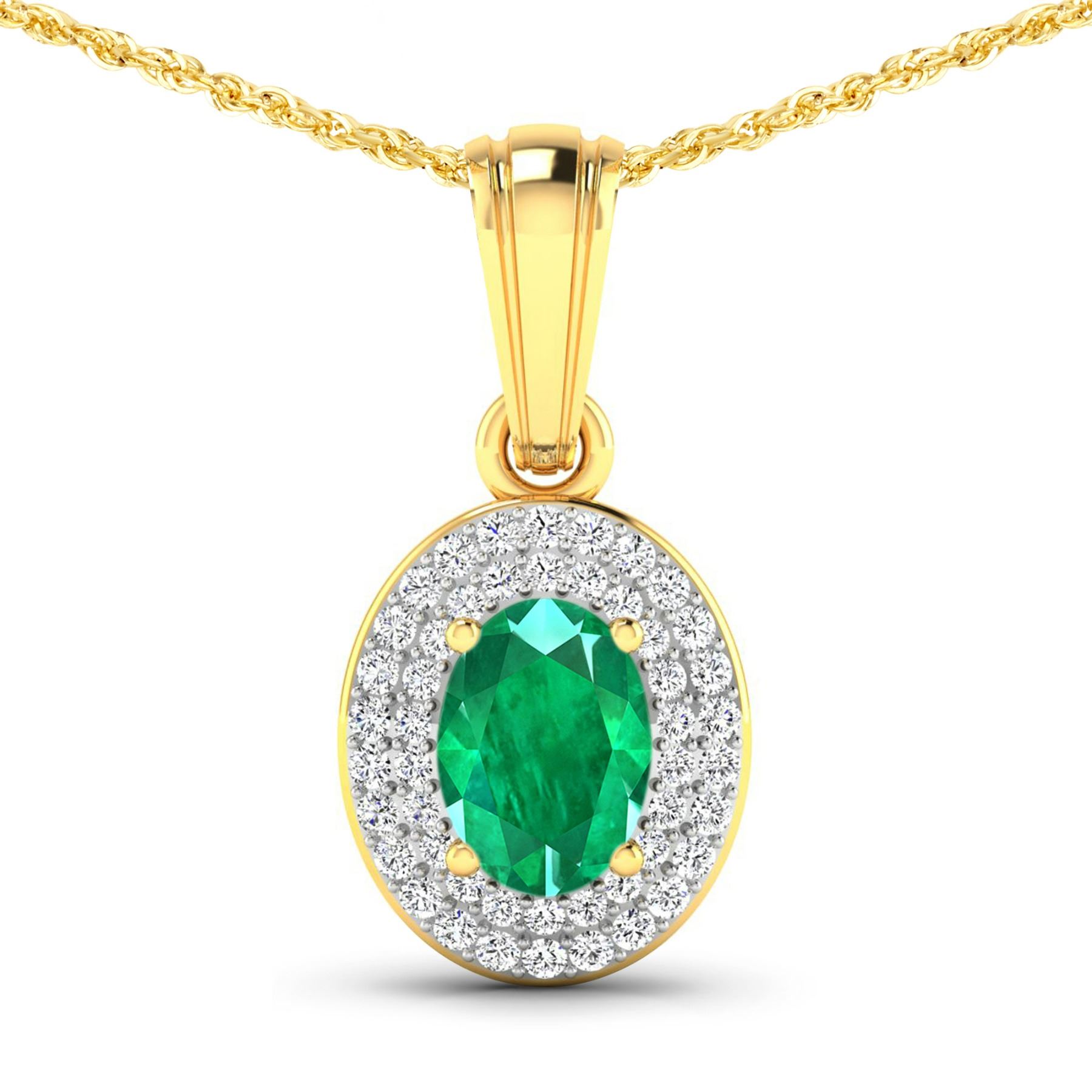 Zambian Emerald (AA) Oval 7x5mm - 1Pc + White Diamond F/C Round 0.90mm - 48Pcs (I1-I2/I color) Total weight of gemstone is 0.56cts. Total Diamond weight is 0.16cts. Total weight of this pendant is 1.41 grams.