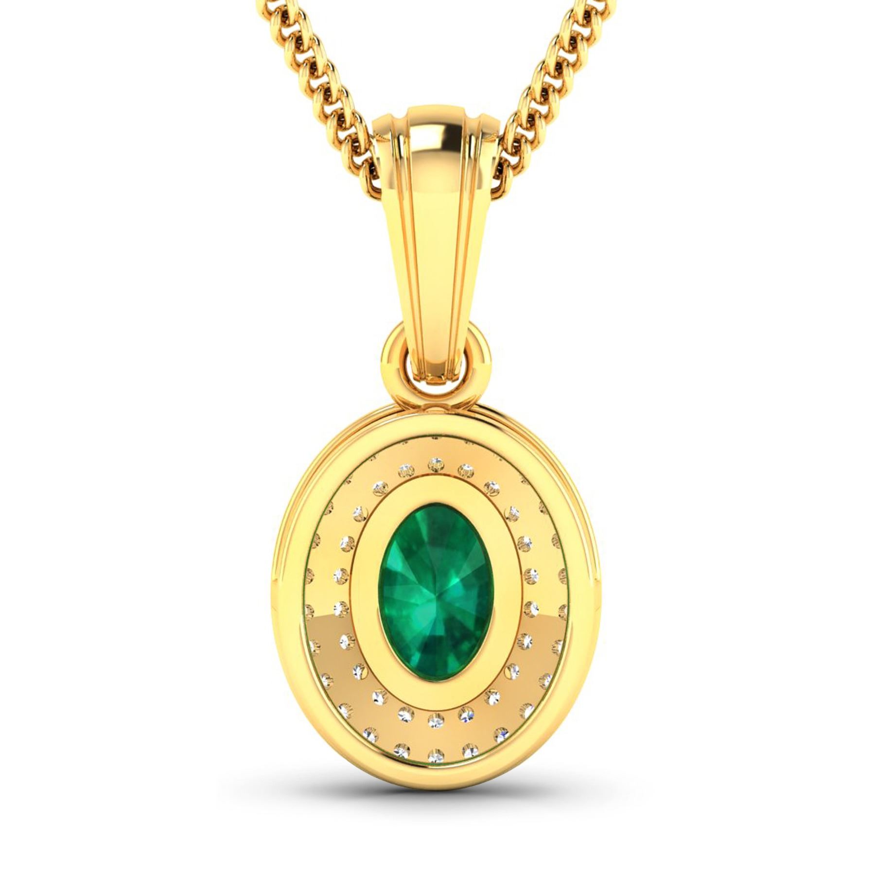 Zambian Emerald (AA) Oval 7x5mm - 1Pc + White Diamond F/C Round 0.90mm - 48Pcs (I1-I2/I color) Total weight of gemstone is 0.56cts. Total Diamond weight is 0.16cts. Total weight of this pendant is 1.41 grams.
