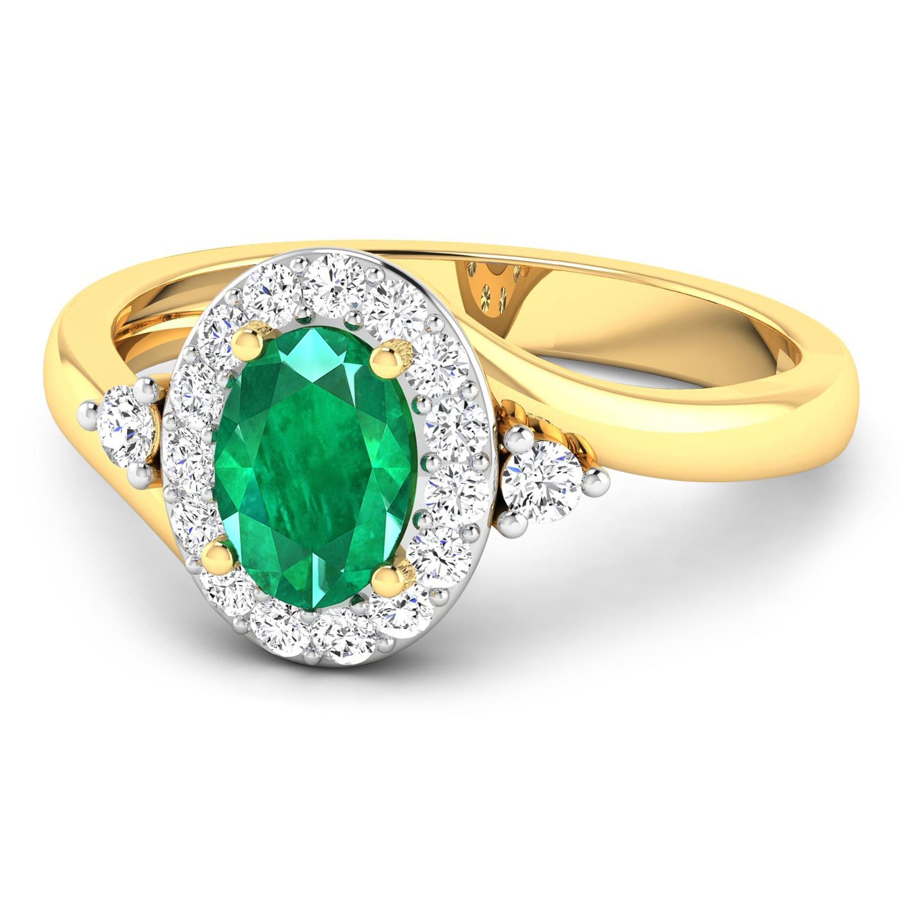 14KT Yellow Gold 0.56ctw Zambian Emerald and Diamond Ring