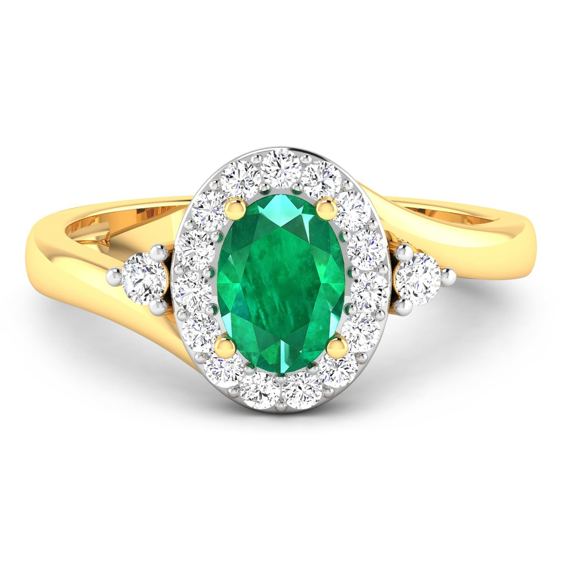 Zambian Emerald (AA) Oval 7x5mm - 1Pc + White Diamond F/C Round 2.00mm - 2Pcs + White Diamond F/C Round 1.50mm - 15Pcs ( White Pan Rhodium ) ( I1-I2/I color ) Total weight of gemstone is 0.56cts. Total Diamond weight is 0.27cts. Total weight of this ring is 2.68 grams. Ring size 7.