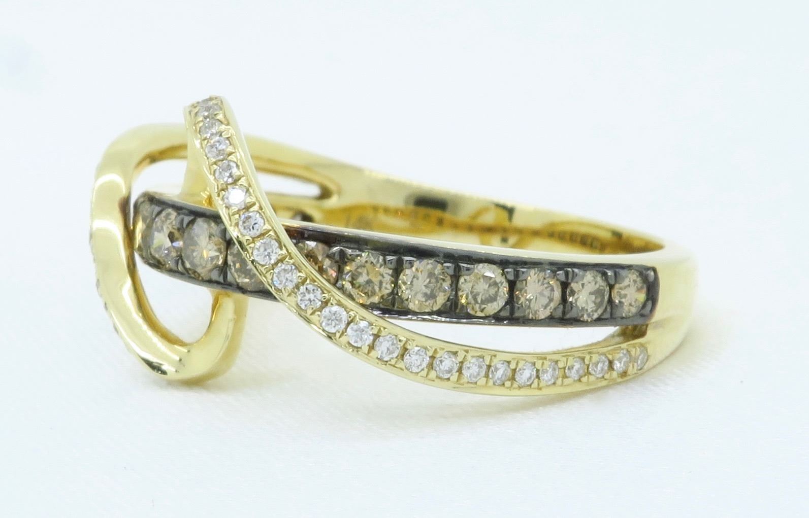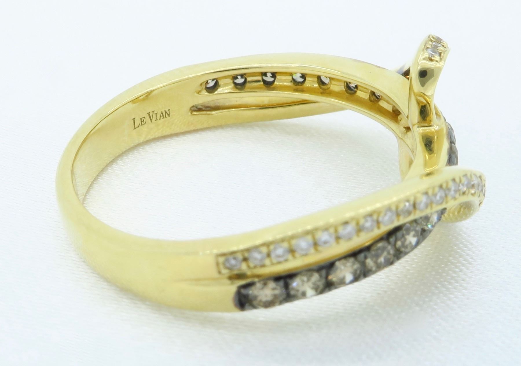 14KT Yellow Gold 0.57ctw Levian Diamond Ring. (18) round Chocolate colored Diamonds with a clarity of SI-2 to I-1 and (48) round Diamonds with a total weight of 0.57cts. Total weight of this ring is 3.6 grams. Ring size is 7.