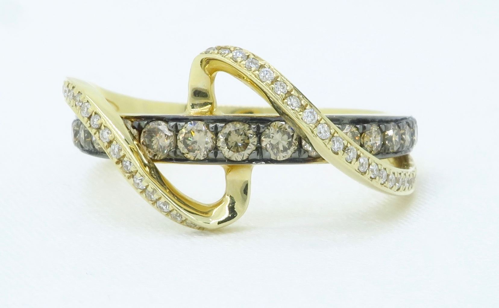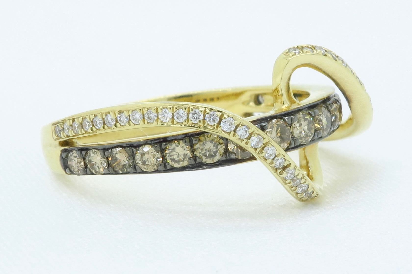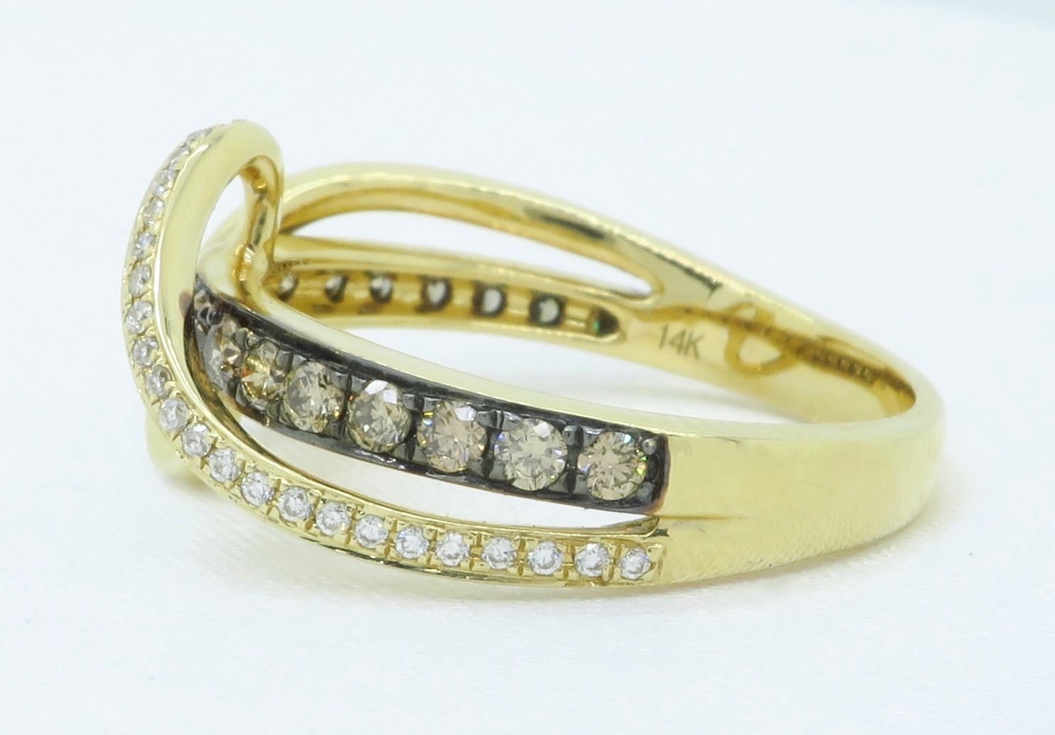 14KT Yellow Gold 0.57ctw Levian Diamond Ring. (18) round Chocolate colored Diamonds with a clarity of SI-2 to I-1 and (48) round Diamonds with a total weight of 0.57cts. Total weight of this ring is 3.6 grams. Ring size is 7.
