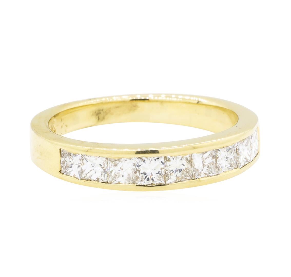 One ring featuring: 14KT yellow gold weighing 2.8 grams containing nine princess cut diamonds weighing 0.60ctw. The ring is a size 5.