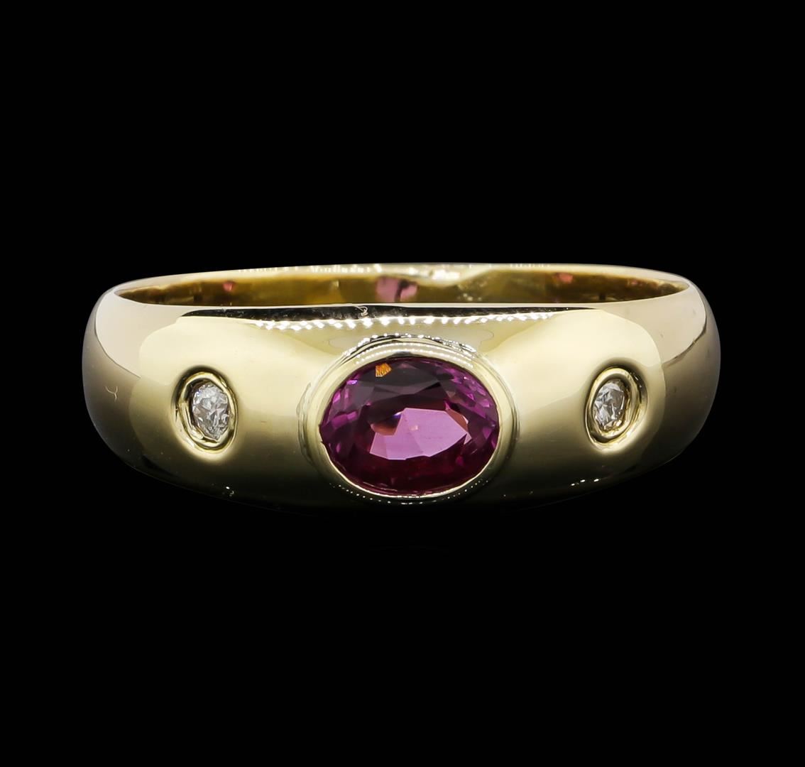 One Ladies ring featuring: 14KT yellow gold weighing 1.6 grams containing one pink sapphire weighing 0.60ct and diamonds weighing 0.04ctw.