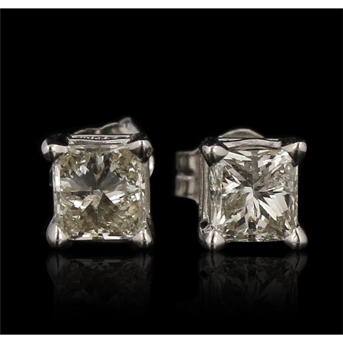 One pair of earrings featuring: 0.80 grams of 14KT yellow gold and 0.61ctw of diamonds.