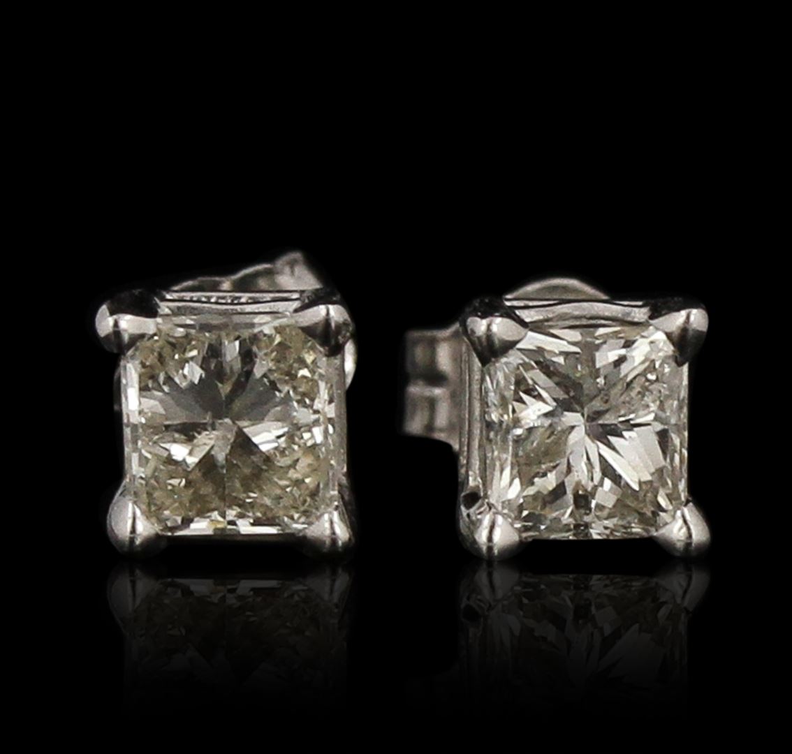 One pair of earrings featuring: 0.80 grams of 14KT yellow gold and 0.61ctw of diamonds.