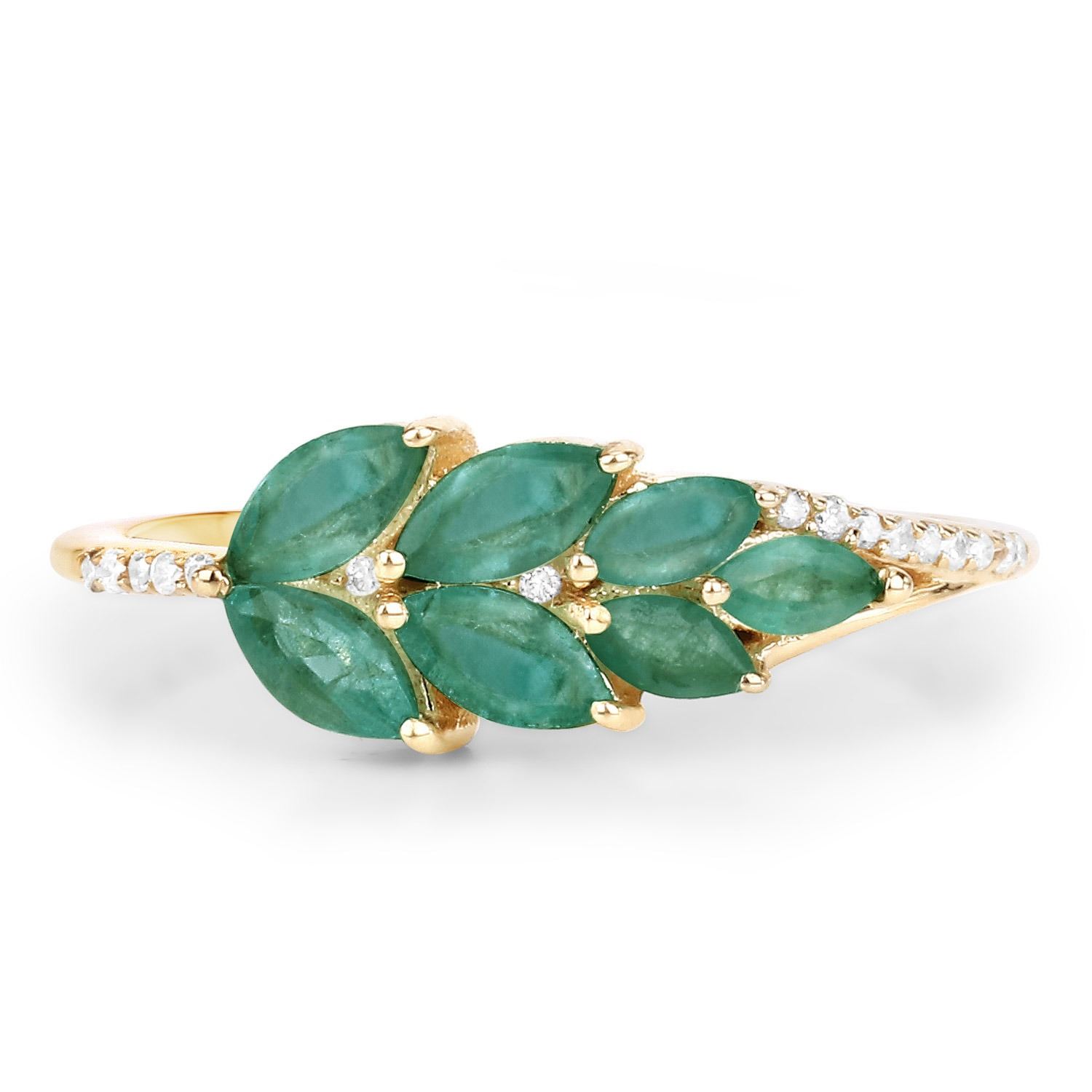 14KT Yellow Gold 0.68ctw Zambian Emerald and White Diamond Ring