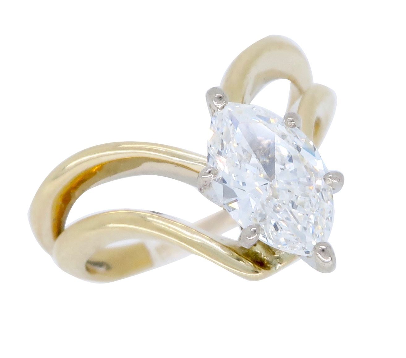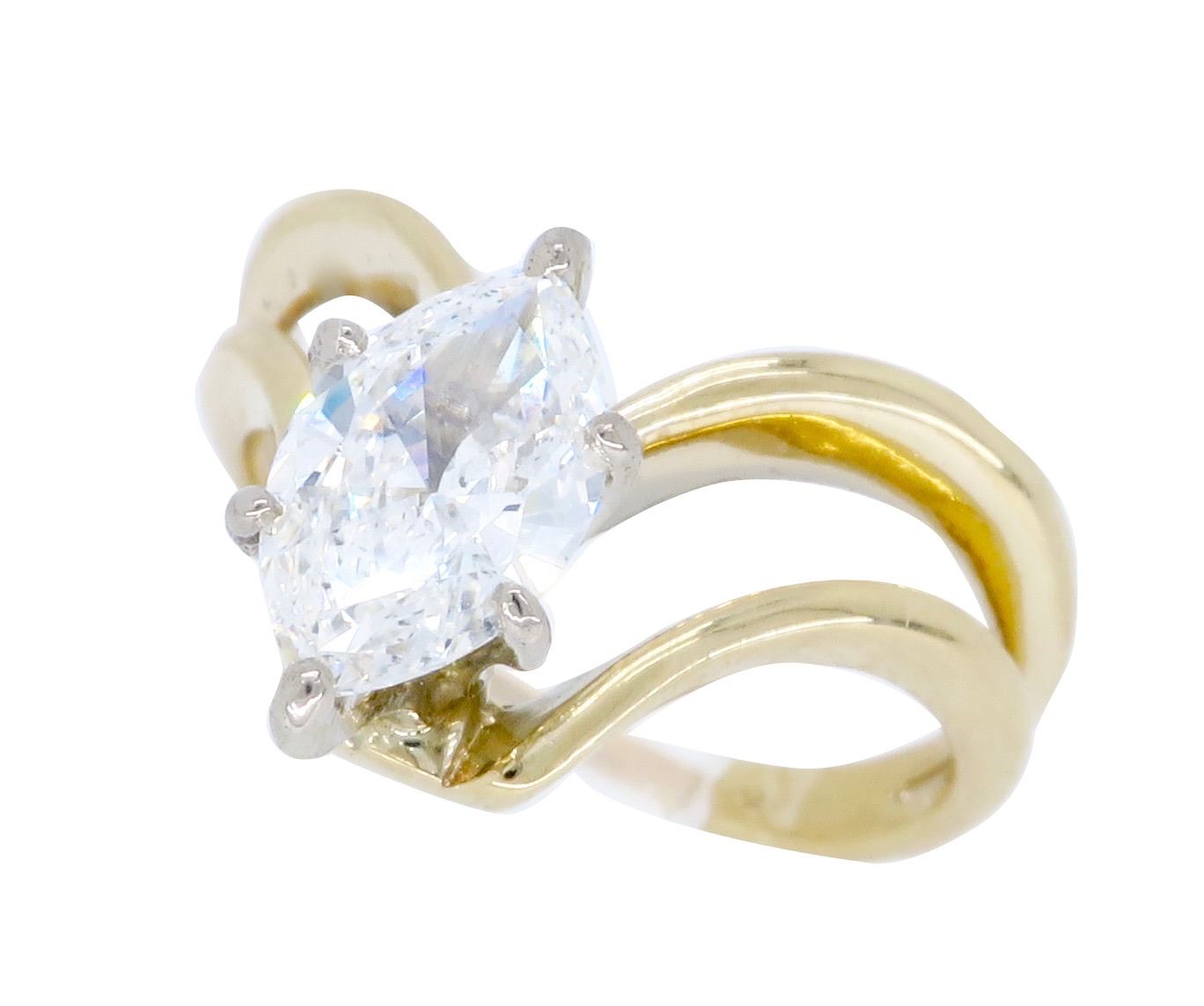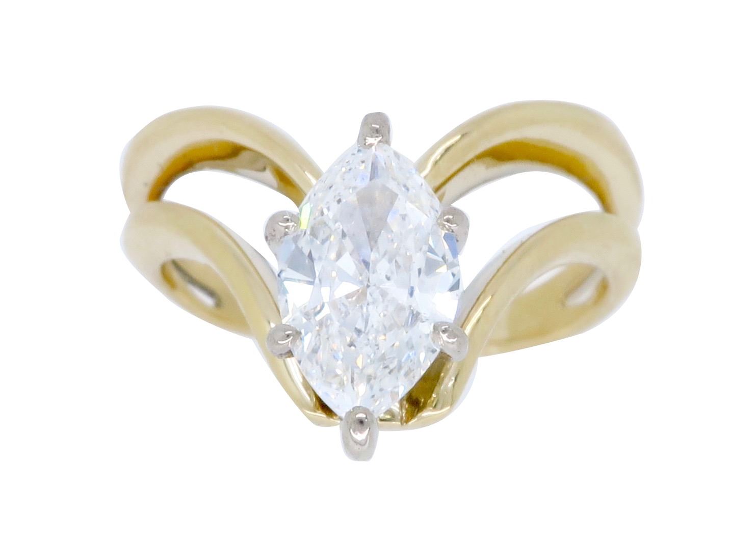 One 14KT Yellow Gold 0.72ct Diamond Ring. (1) Marquise Diamond with a total weight of 0.72cts with a color of F and clarity of I-1. Total weight of this ring is 4.0 grams.