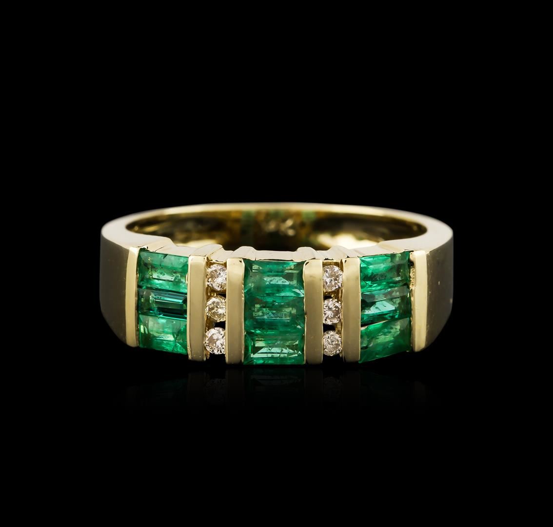 One ring featuring: 14KT yellow gold weighing 3.70 grams containing emeralds weighing a total of 0.74ct and diamonds weighing a total of 0.10ct.