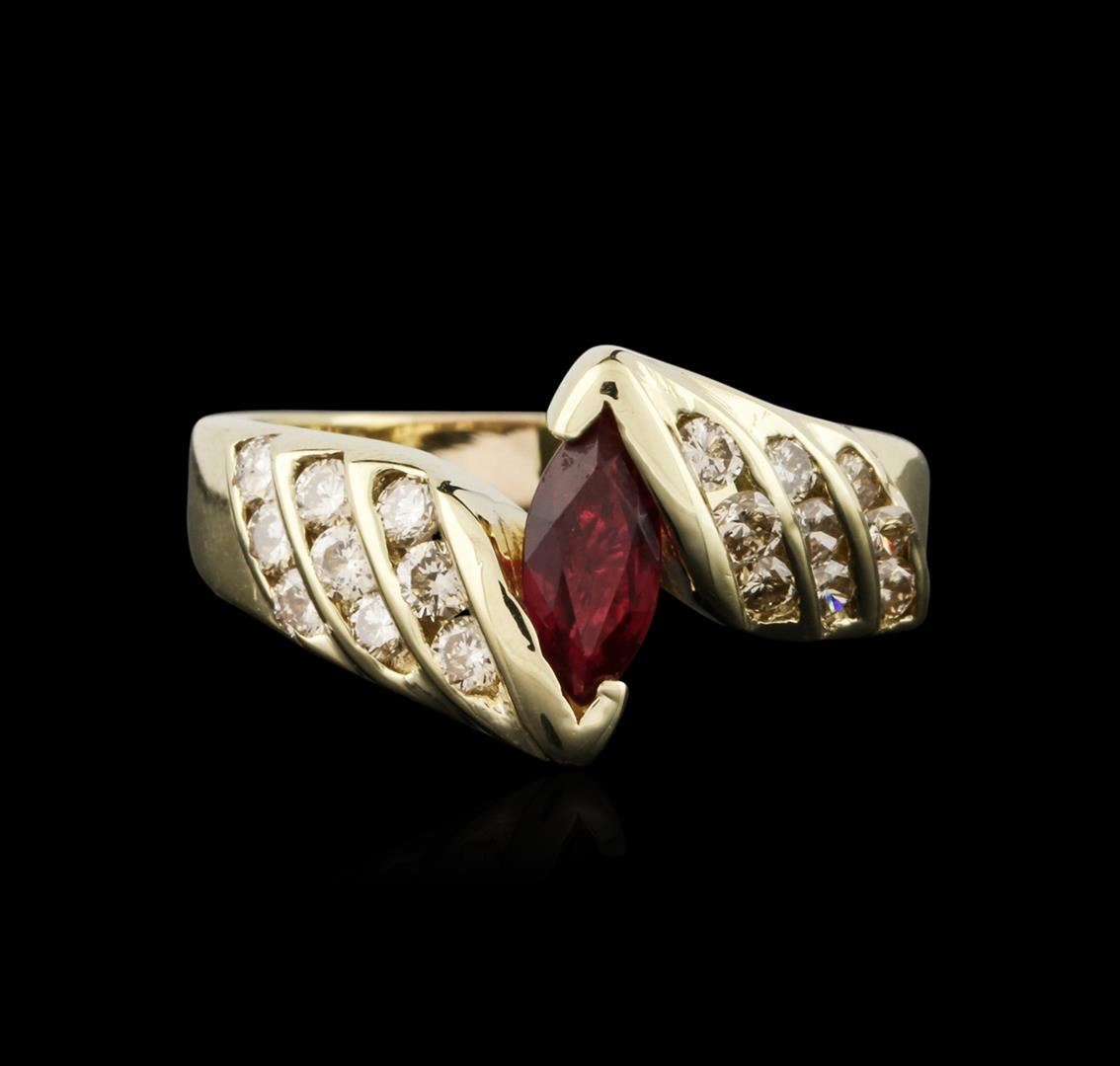 One ring featuring: 14KT yellow gold weighing 6.06 grams containing one marquise cut ruby center weighing 0.75ct and round cut diamonds weighing a total of 0.50ct.
