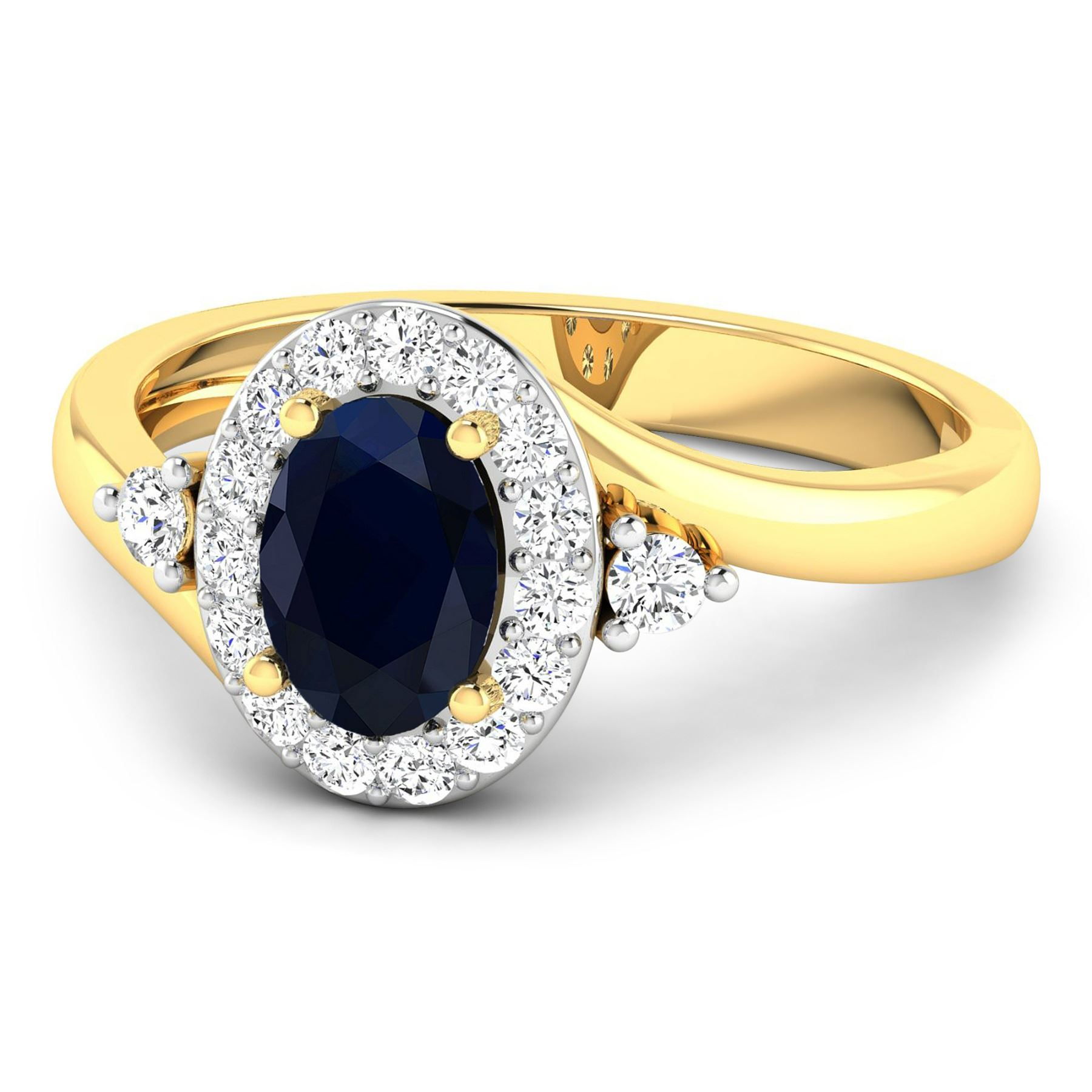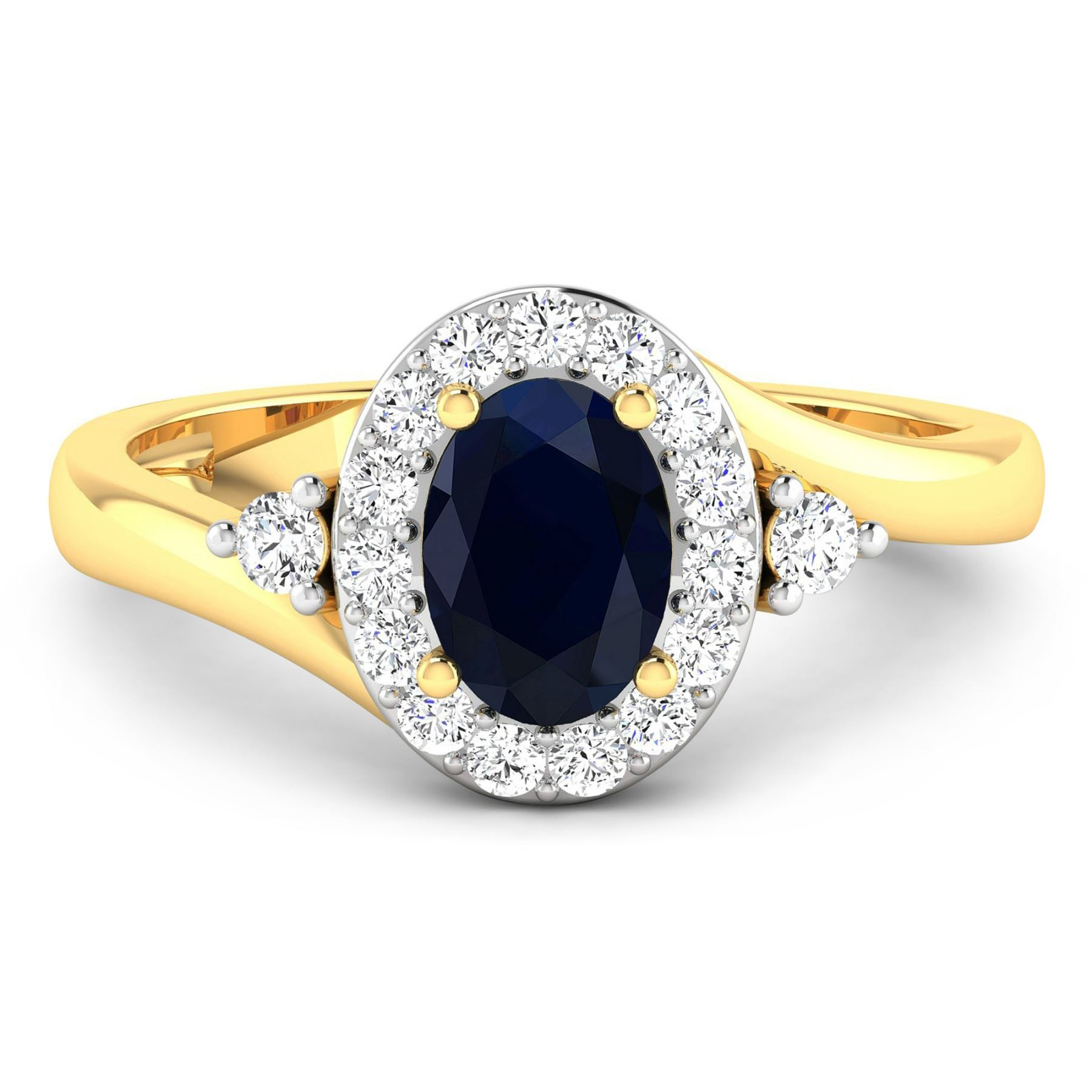 Blue Sapphire (AA) Oval 7x5mm - 1Pc + White Diamond F/C Round 2.00mm - 2Pcs + White Diamond F/C Round 1.50mm - 15Pcs ( White Pan Rhodium ) ( I1-I2/I color ) Total weight of gemstone is 0.75cts. Total Diamond weight is 0.27cts. Total weight of this ring is 2.71 grams. Ring size 7.