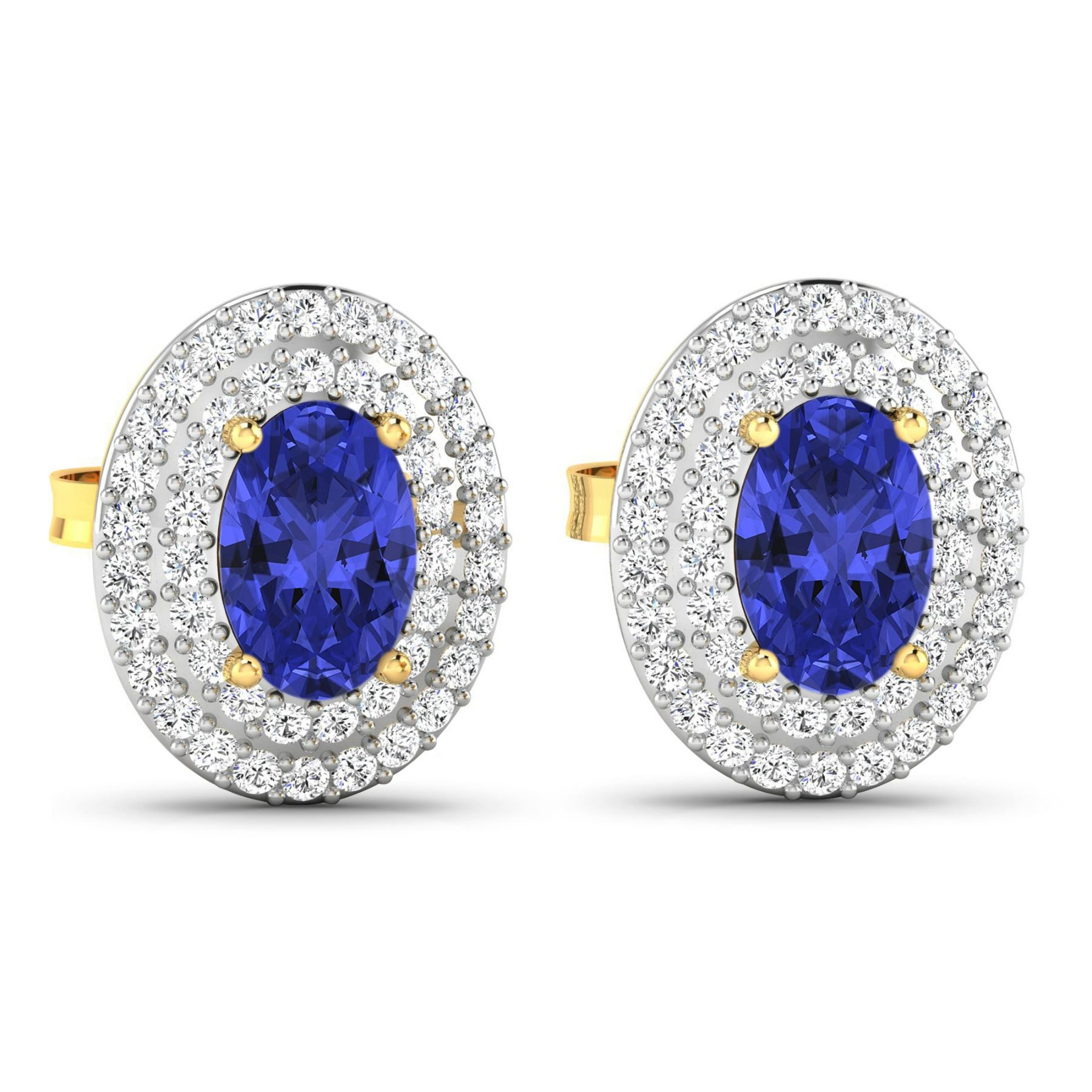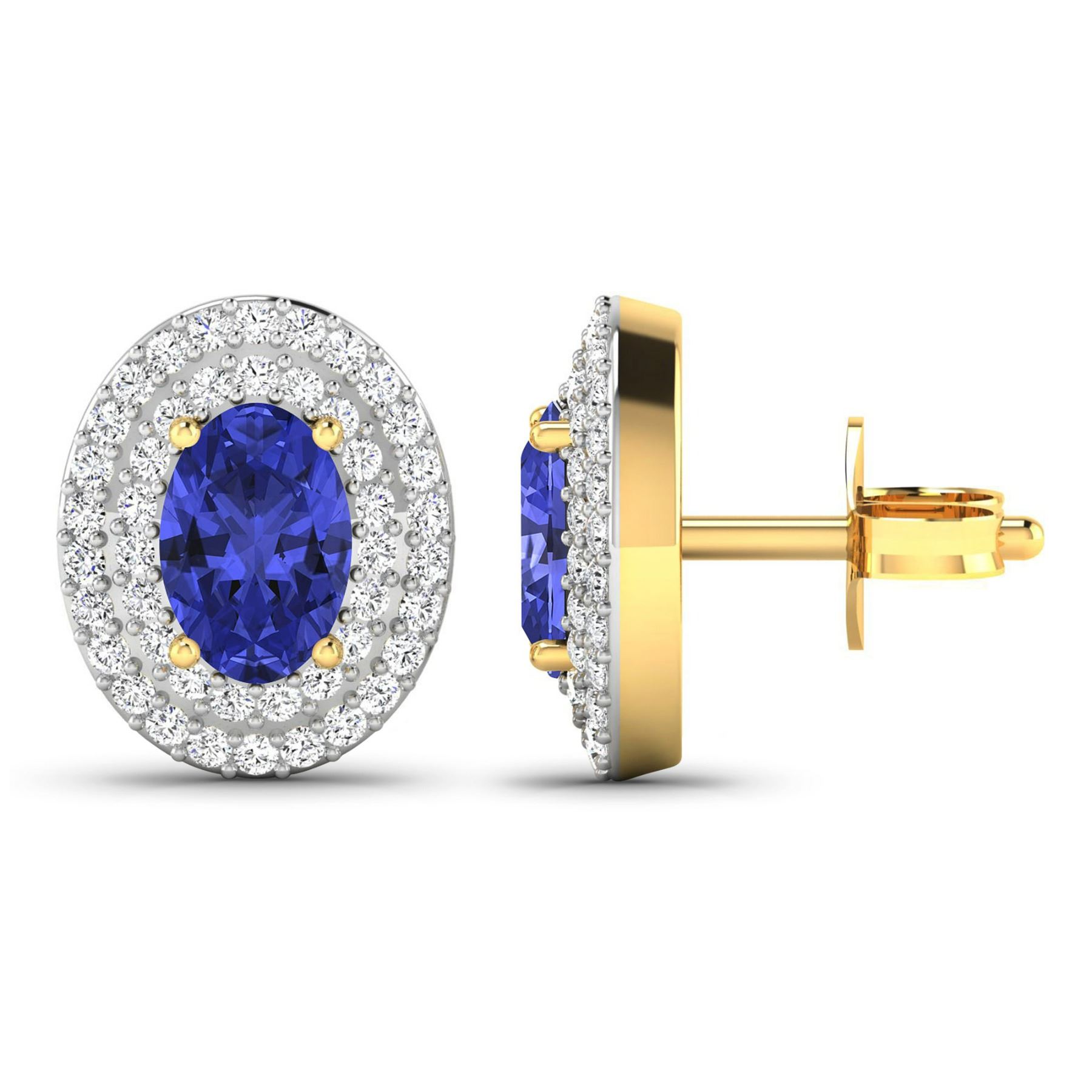 Tanzanite (AA+) Oval 6x4mm - 2Pcs + White Diamond F/C Round 0.90mm - 90Pcs ( I1-I2/I color ) ( Push Post ) Total weight of gemstones is 0.76cts. Total Diamond weight is 0.31cts. Total weight of these earrings are 2.32 grams.