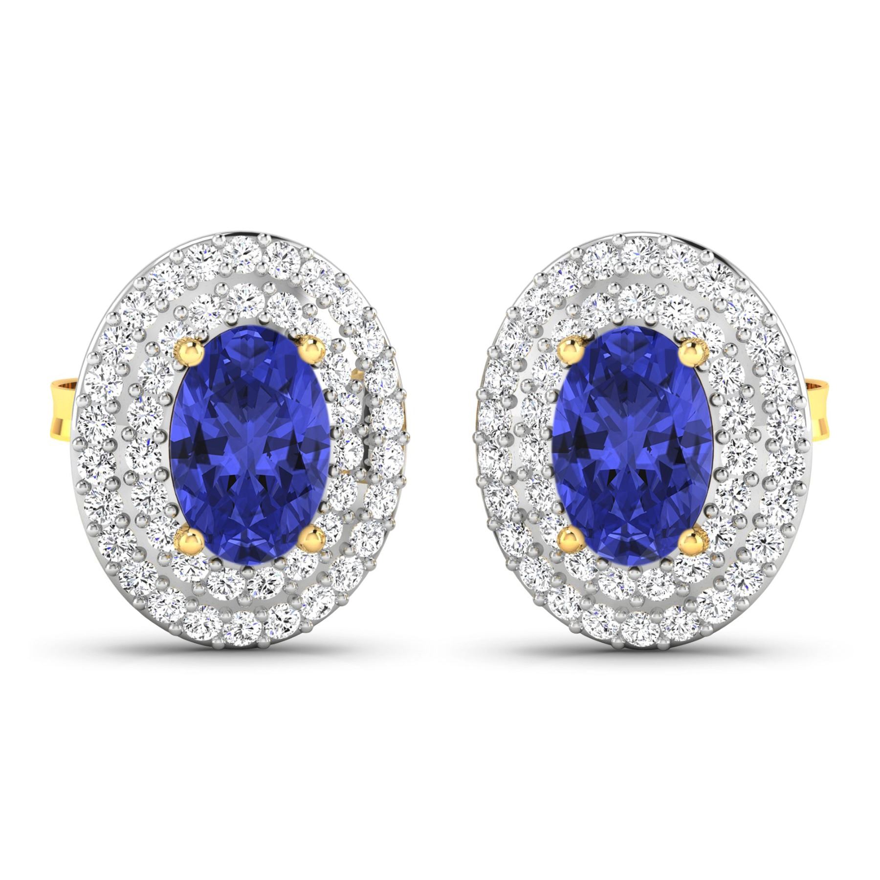 Tanzanite (AA+) Oval 6x4mm - 2Pcs + White Diamond F/C Round 0.90mm - 90Pcs ( I1-I2/I color ) ( Push Post ) Total weight of gemstones is 0.76cts. Total Diamond weight is 0.31cts. Total weight of these earrings are 2.32 grams.