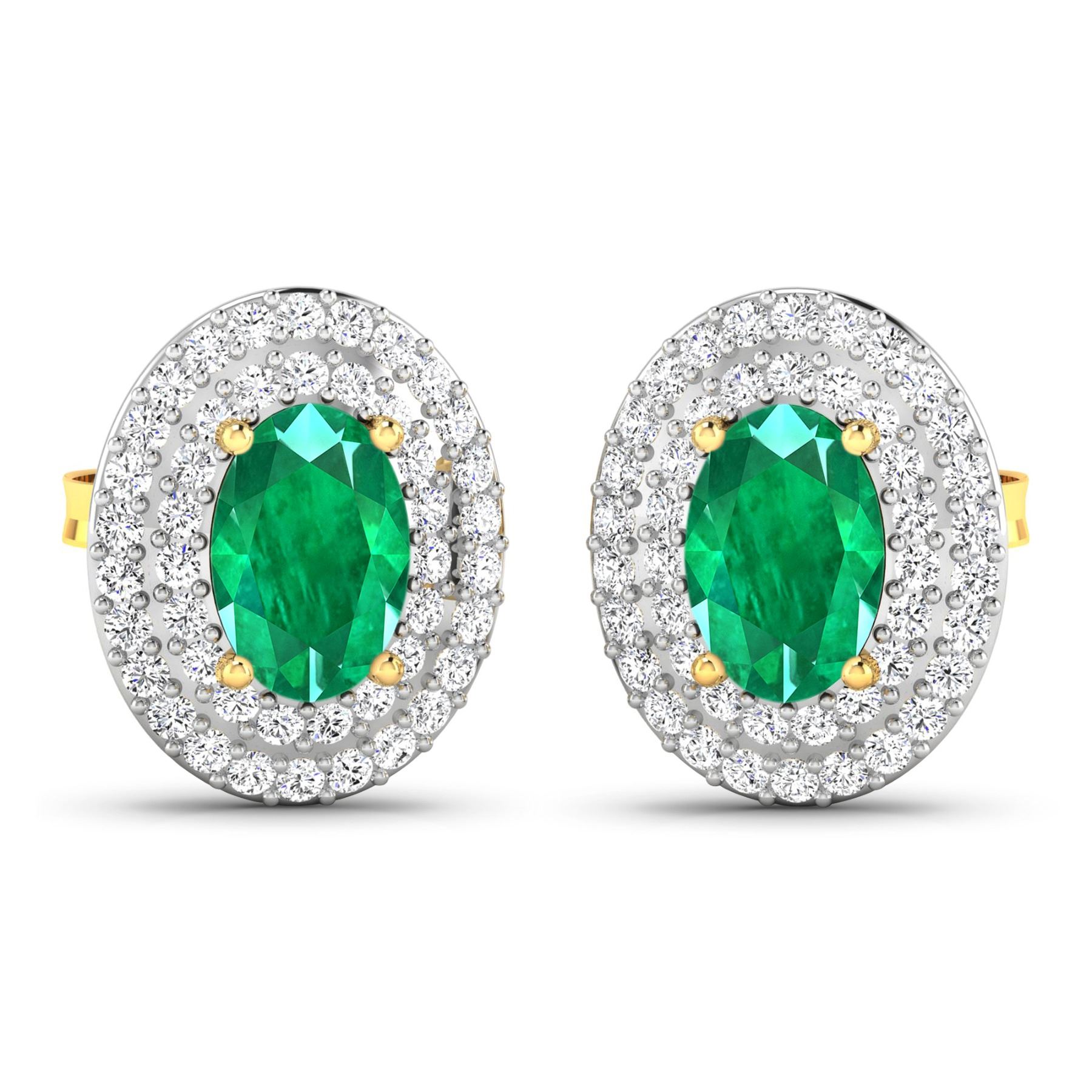 Zambian Emerald (AA) Oval 6x4mm - 2Pcs + White Diamond F/C Round 0.90mm - 90Pcs (I1-I2/I color) ( Push Post ) Total weight of gemstones is 0.76cts. Total Diamond weight is 0.31cts. Total weight of these earrings are 2.32 grams.