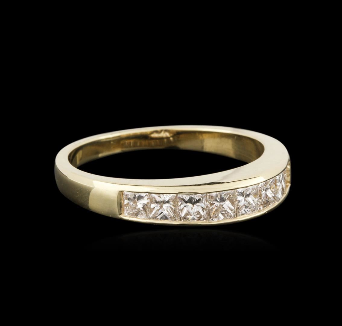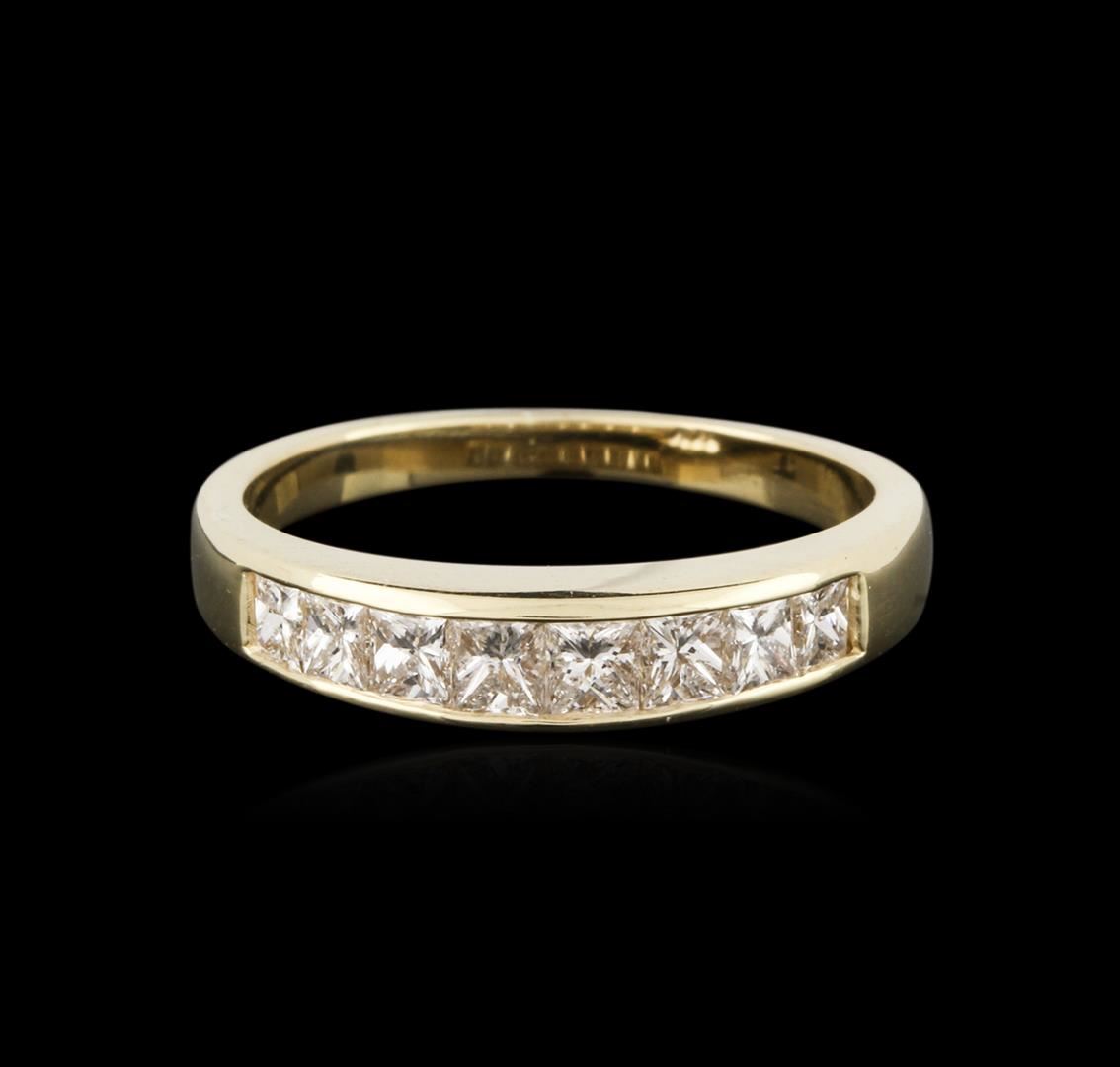 One ring featuring: 14KT yellow gold weighing 3.21 grams containing eight princess cut diamonds weighing a total of 0.80ct.