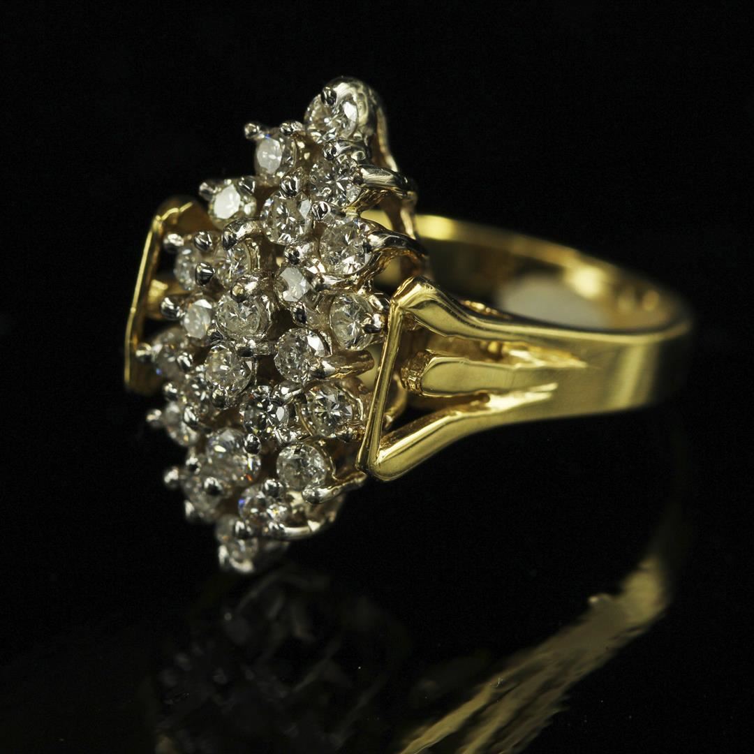 One Woman's Marquise Design Diamond Round Cut Ring in 14k Yellow Gold. Condition is brand new. Total stone weight is 0.80 carats. Gross weight is 5.11 grams, total stones 24, and size is 5.25 but can be resized free of charge. Main stone is not enhanced and natural. Main diamond weight is 0.80 carats, shape is round brilliant cut, clarity SI-1, color H / I, and cut is excellent.