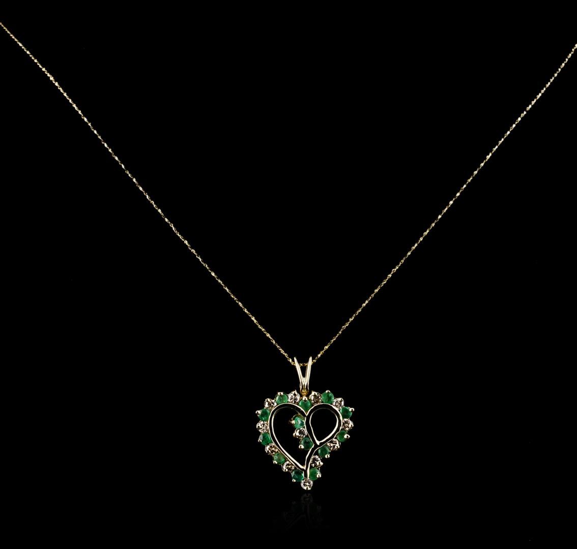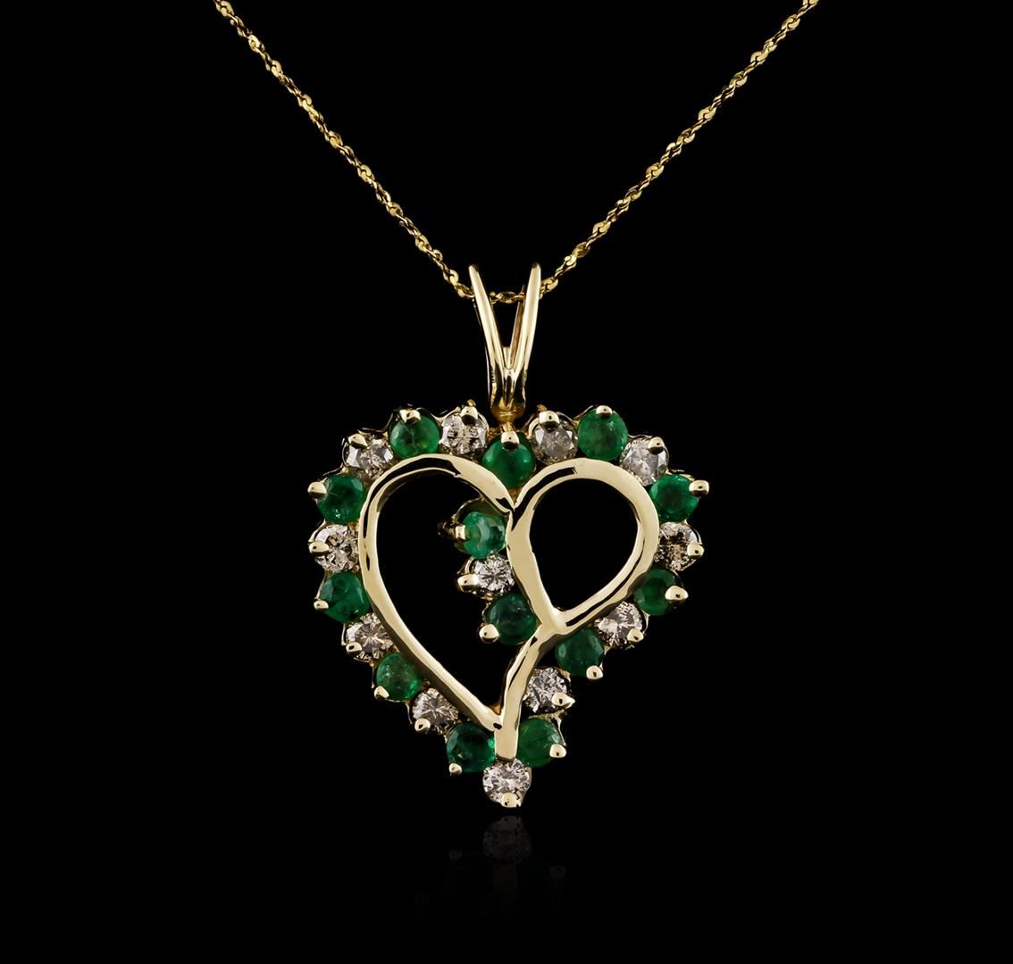 One heart pendant with chain featuring: 14KT yellow gold weighing 5.40 grams containing emeralds with a total weight of 0.80ct and diamonds with a total weight of 0.50ct.