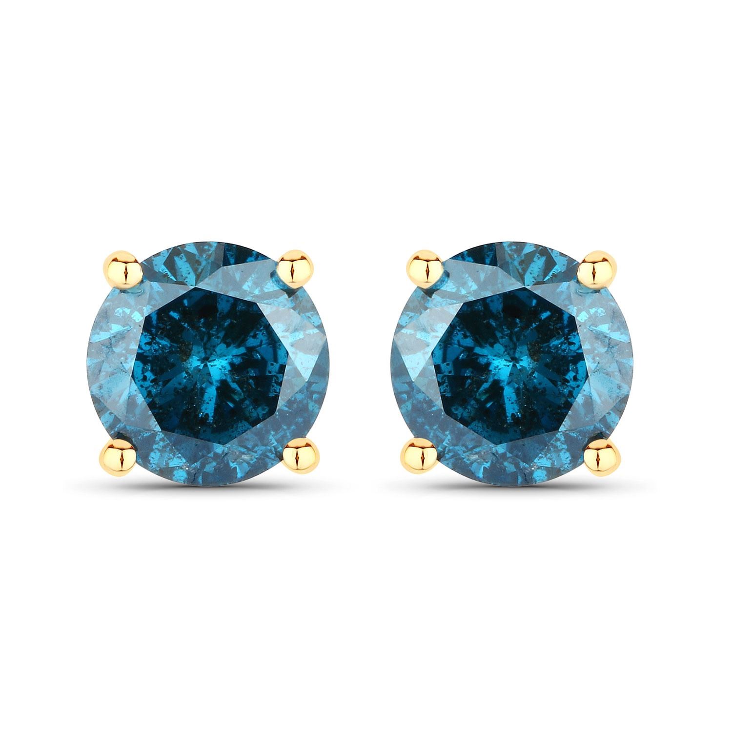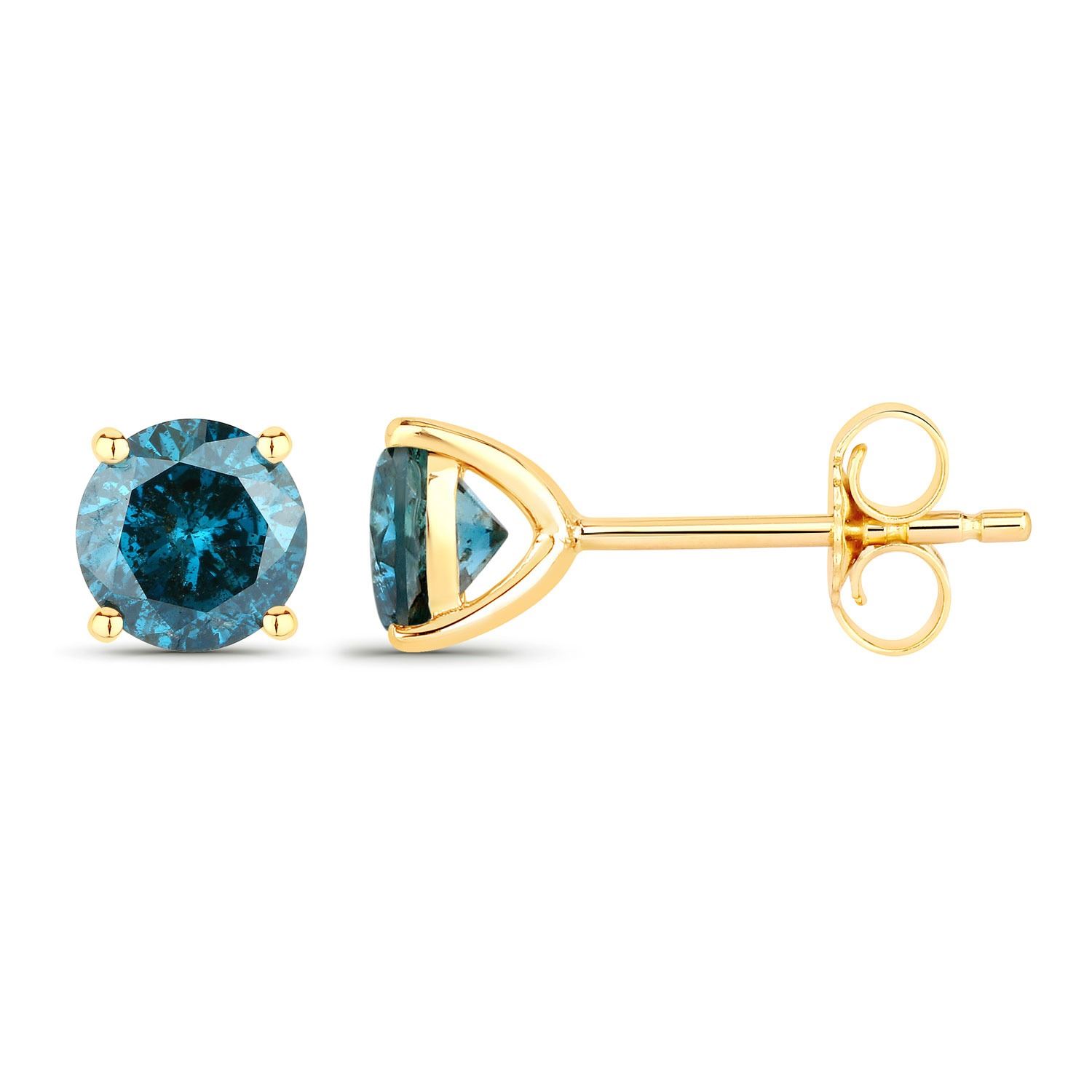 One pair of 14KT Yellow Gold 0.81ctw Blue Diamonds Earrings. 2 natural Round Blue Diamonds with a total weight of 0.81cts.