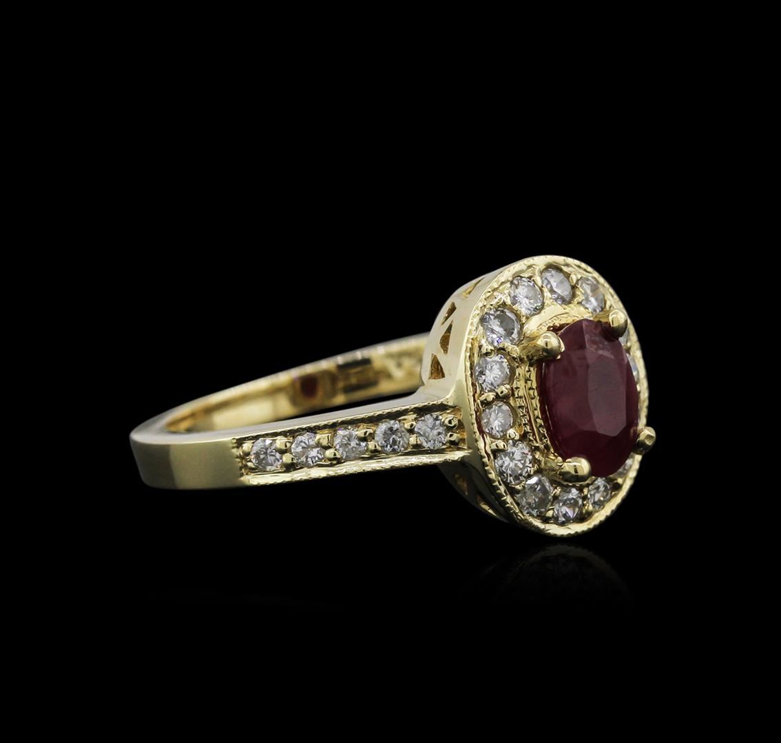 One ring featuring: 14KT yellow gold weighing 5.05 grams containing one ruby center stone with a total weight of 0.82ct and 24 diamonds with a total weight of 0.43ct.