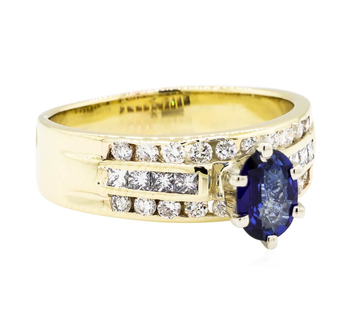 One ring featuring: 14KT yellow gold weighing 6.0 grams containing one sapphire weighing 0.83ct and diamonds weighing 1.20ctw. The ring is a size 8.5.