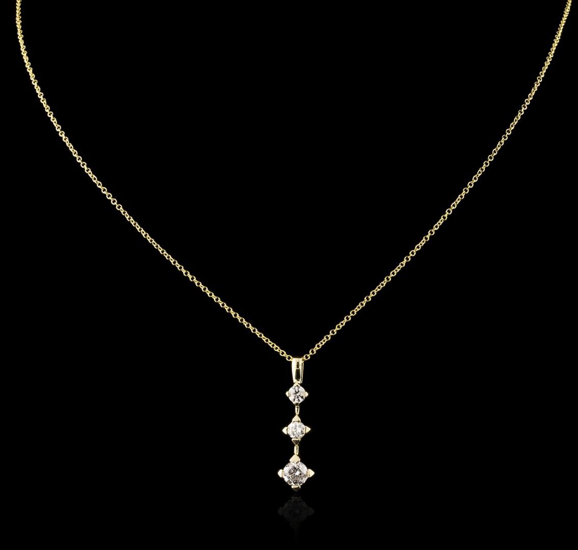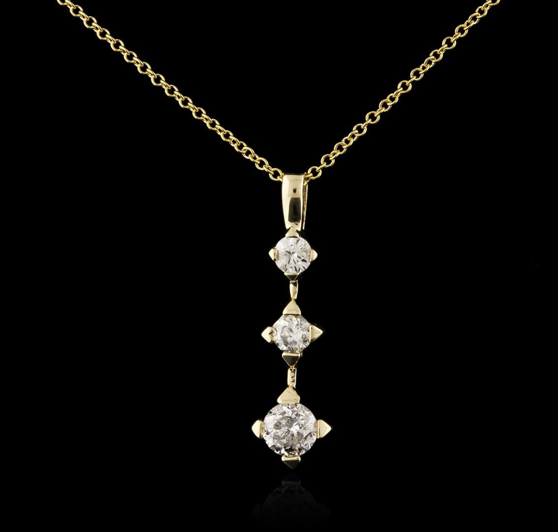 One pendant with chain featuring: 14KT yellow gold weighing 3.73 grams containing prong set round diamonds with a total weight of 0.85ct.