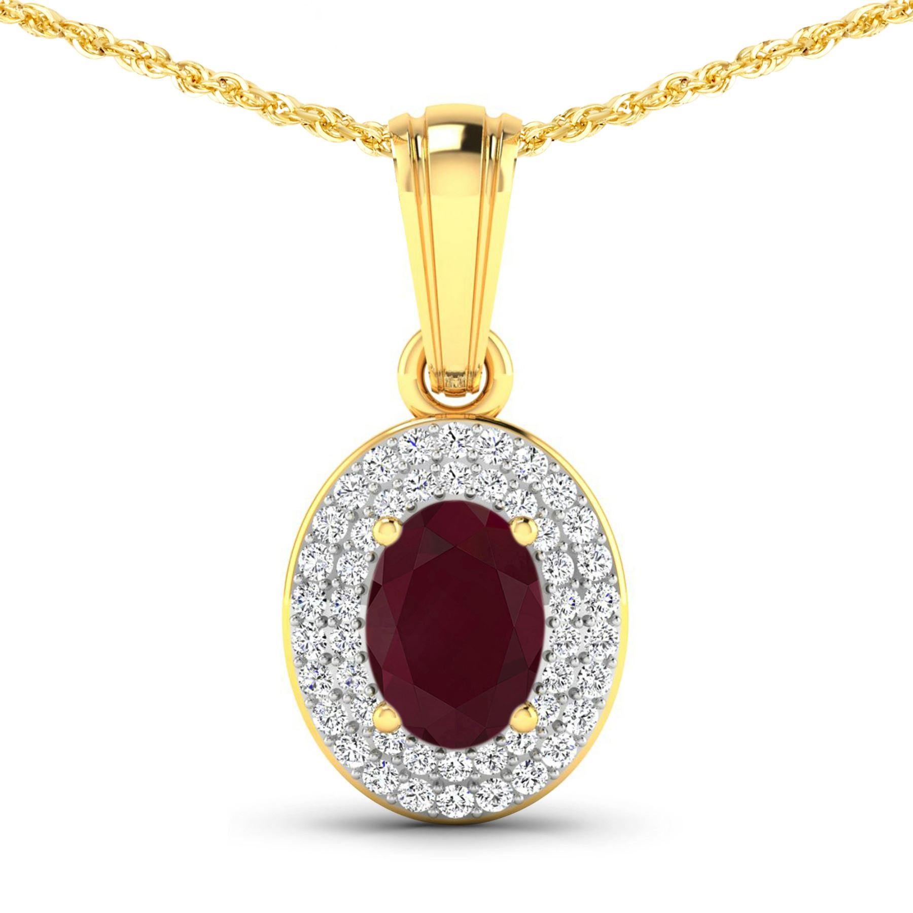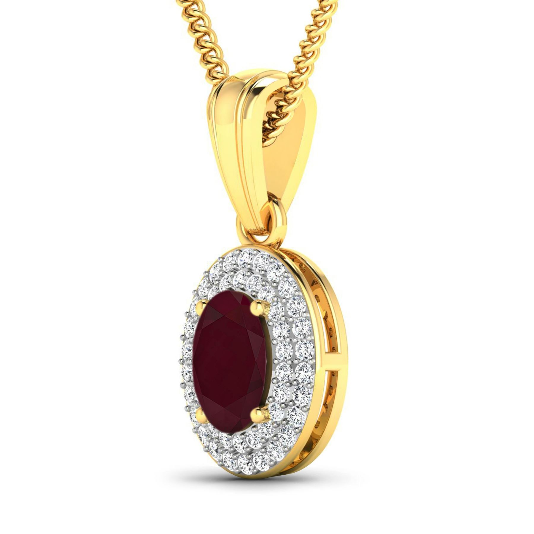 Ruby (AA) Oval 7x5mm - 1Pc + White Diamond F/C Round 0.90mm - 48Pcs ( White Pan Rhodium ) (I1-I2/I color) Total weight of gemstone is 0.85cts. Total Diamond weight is 0.16cts. Total weight of this pendant is 1.46 grams.