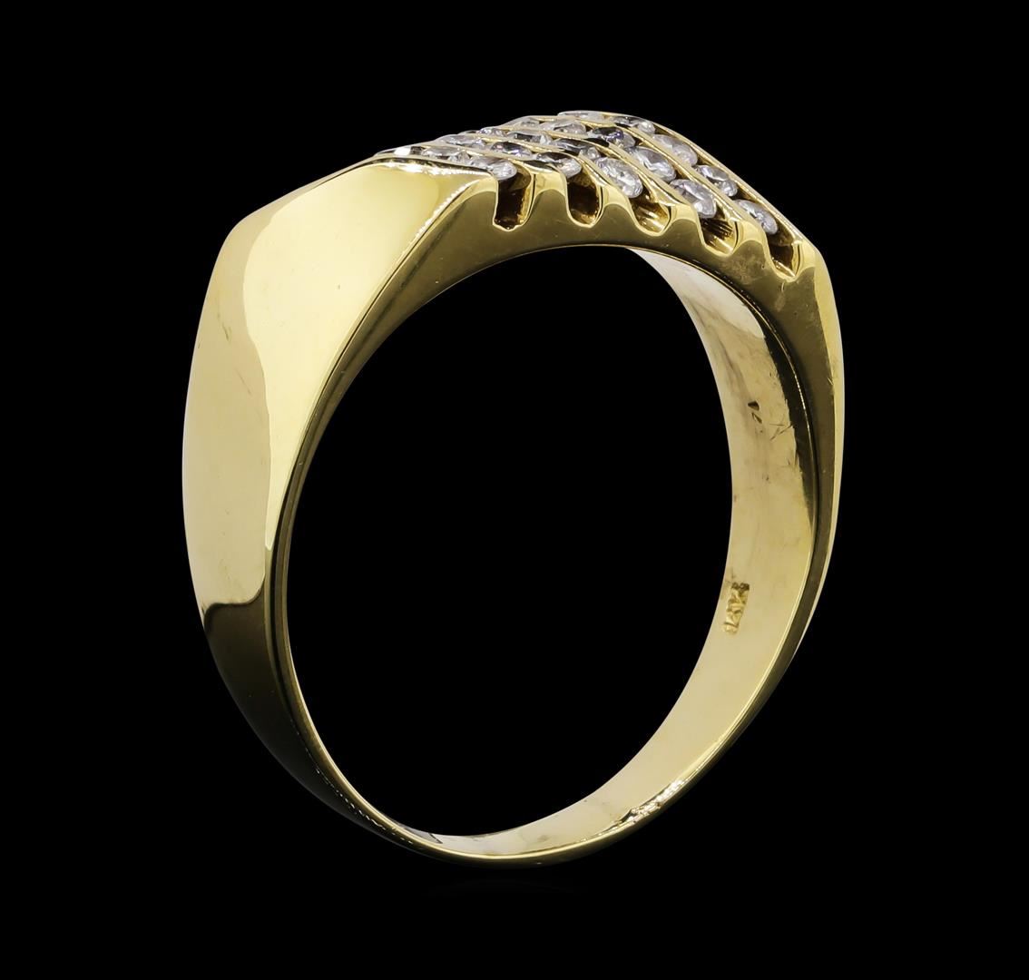 One 14KT Yellow Gold 0.90ctw Diamond Ring. Total weight of diamonds is 0.90cts. Total weight of the ring is 8.0 grams.