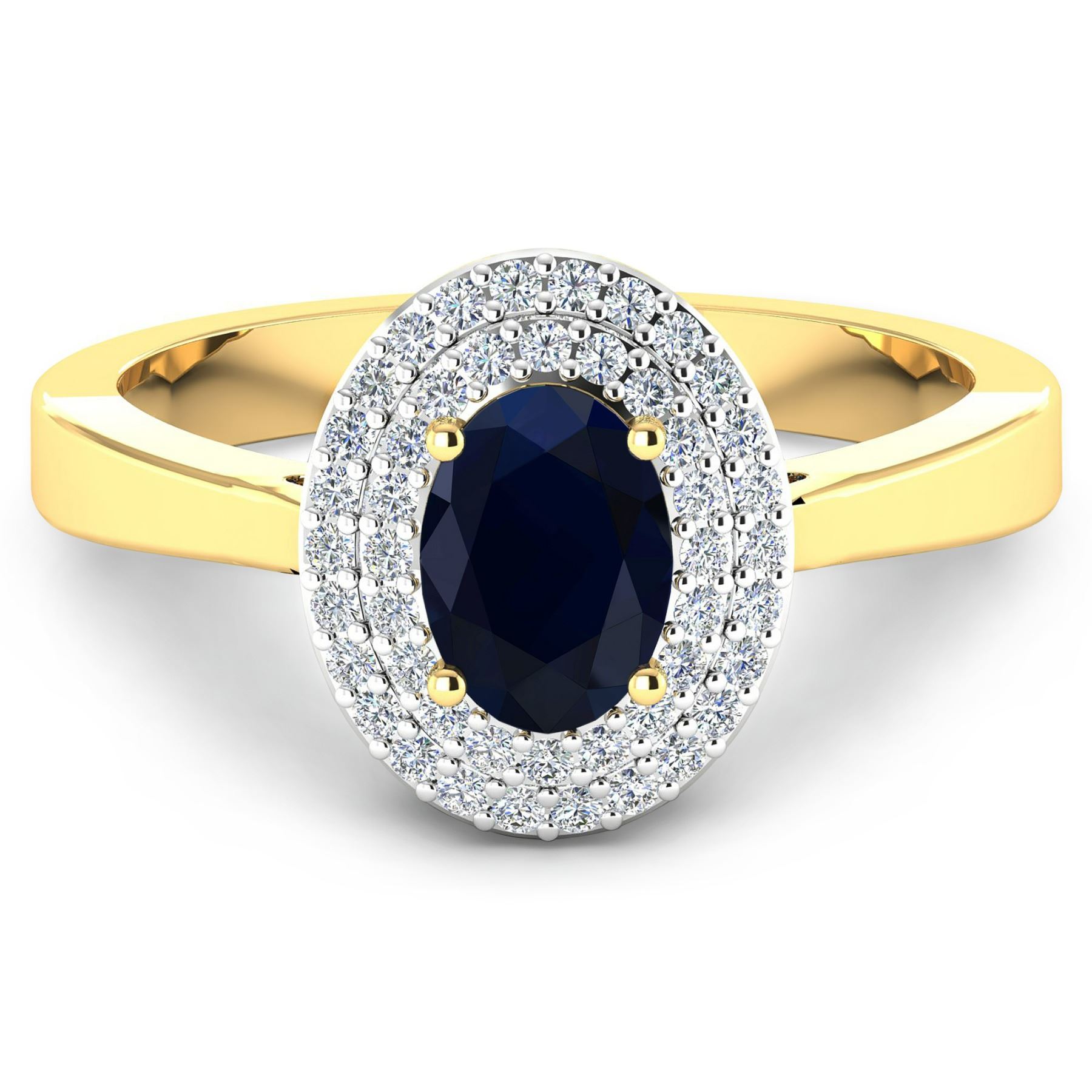 Blue Sapphire (AA) Oval 7x5mm - 1Pc + White Diamond F/C Round 0.90mm - 46Pcs ( White Pan Rhodium ) (I1-I2/I color). Total weight of gemstone is 0.9cts. Total weight of Diamonds is 0.16cts. Total weight of this ring is 2.58 grams. Ring size 7.