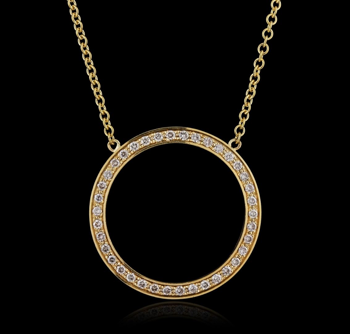 One Pendant With Chain featuring: 14KT Yellow Gold with a total weight of 7.10 grams, and diamonds with a total weight of 0.90ctw.