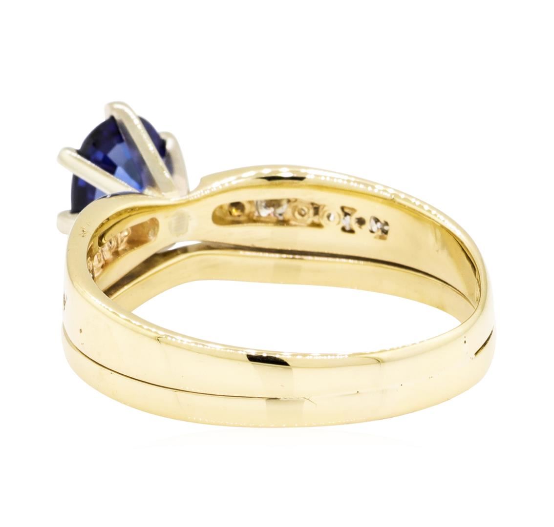 One ring featuring: 14KT yellow gold weighing 4.0 grams containing one sapphire weighing 0.92ct and diamonds weighing 0.30ctw. The ring is a size 7.5