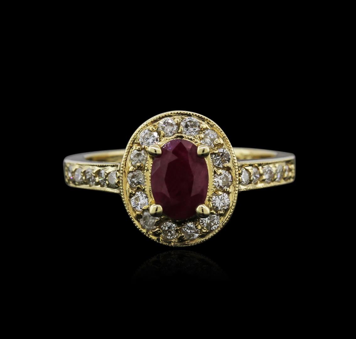 One ring featuring: 14KT yellow gold weighing 5.05 grams containing one ruby center stone with a total weight of 0.93ct and 25 diamonds with a total weight of 0.44ct.