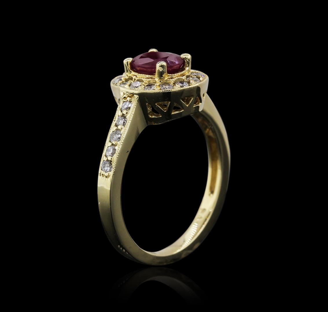 One ring featuring: 14KT yellow gold weighing 5.05 grams containing one ruby center stone with a total weight of 0.93ct and 25 diamonds with a total weight of 0.44ct.