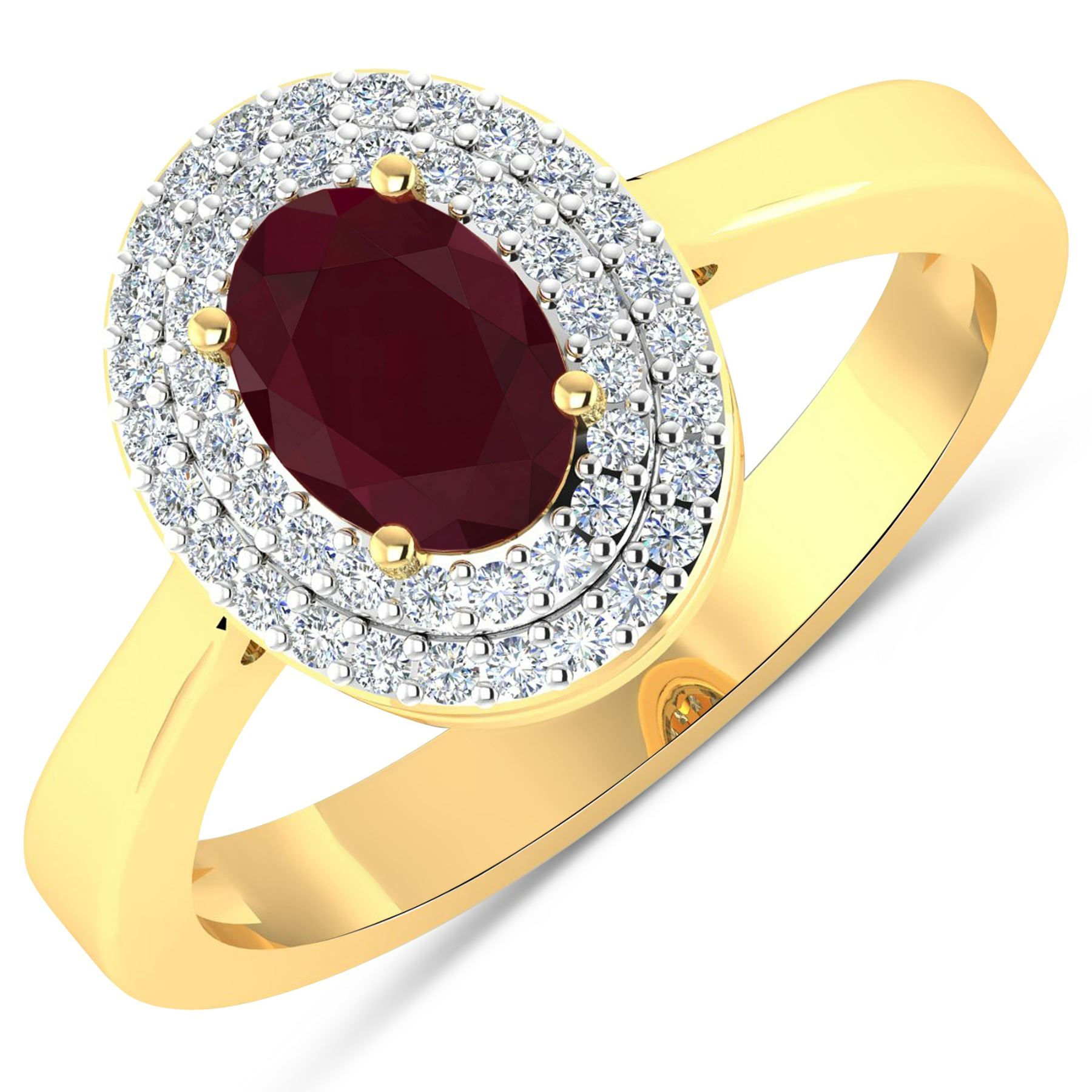 Ruby (AA) Oval 7x5mm - 1Pc + White Diamond F/C Round 0.90mm - 46Pcs ( White Pan Rhodium ) (I1-I2/I color). Total weight of gemstone is 0.95cts. Total weight of Diamonds is 0.16cts. Total weight of this ring is 2.6 grams. Ring size 7.