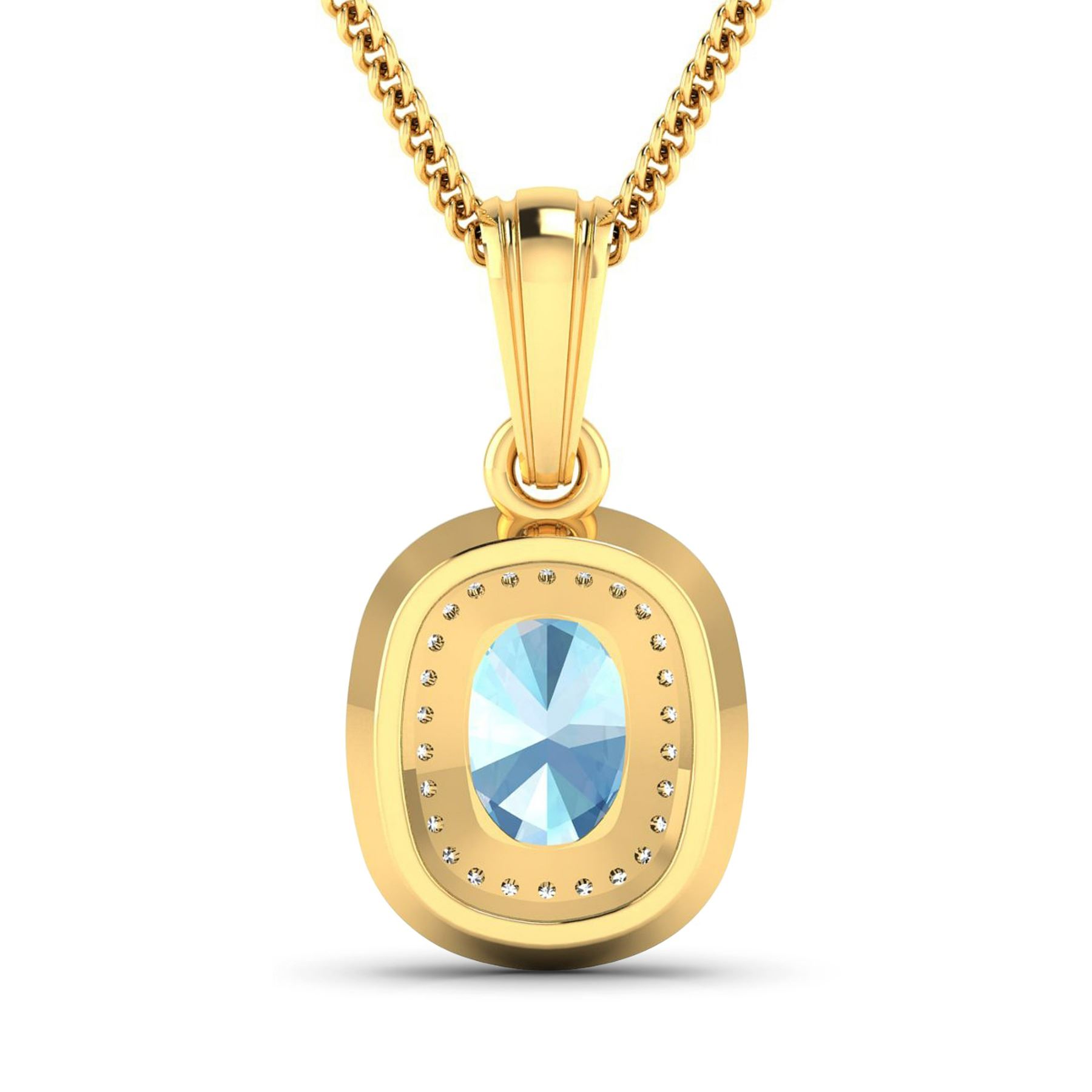 14KT Yellow Gold 0.96ct Aquamarine and Diamond Pendant with Chain