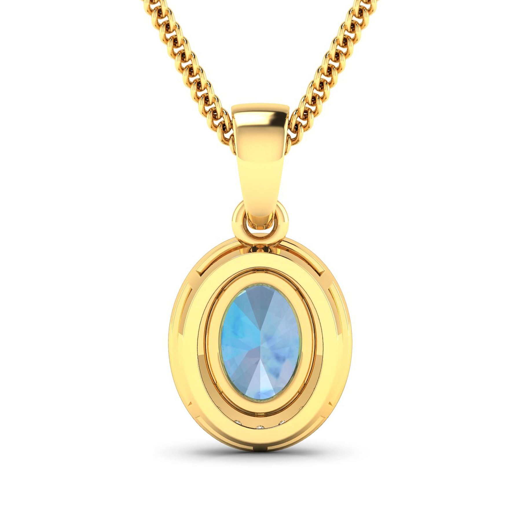1 Aquamarine stone with a total weight of 0.96cts. Aquamarine (AA+) Oval 8x6mm - 1Pc + White Diamond F/C Round 1.20mm - 22Pcs + White Diamond F/C Round 1.10mm - 1Pc ( I1-I2/I color ). Diamonds with a total weight of 0.18cts. Total weight of pendant with chain is 1.61 grams. 16inch chain.