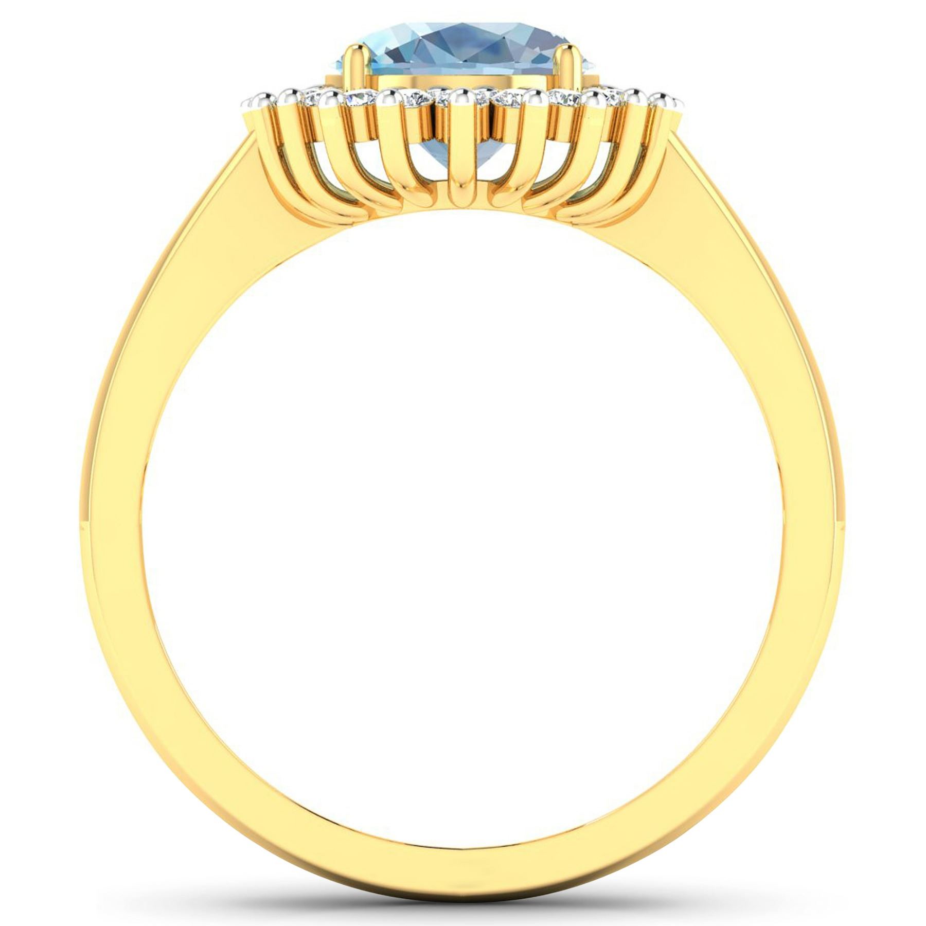 1 Aquamarine stone with a total weight of 0.96cts. Aquamarine (AA+) Oval 8x6mm - 1Pc + White Diamond F/C Round 1.40mm - 17Pcs (I1-I2/I color). 0.19cts of Diamonds. Total weight of this ring is 3.22 grams. Ring size 7.
