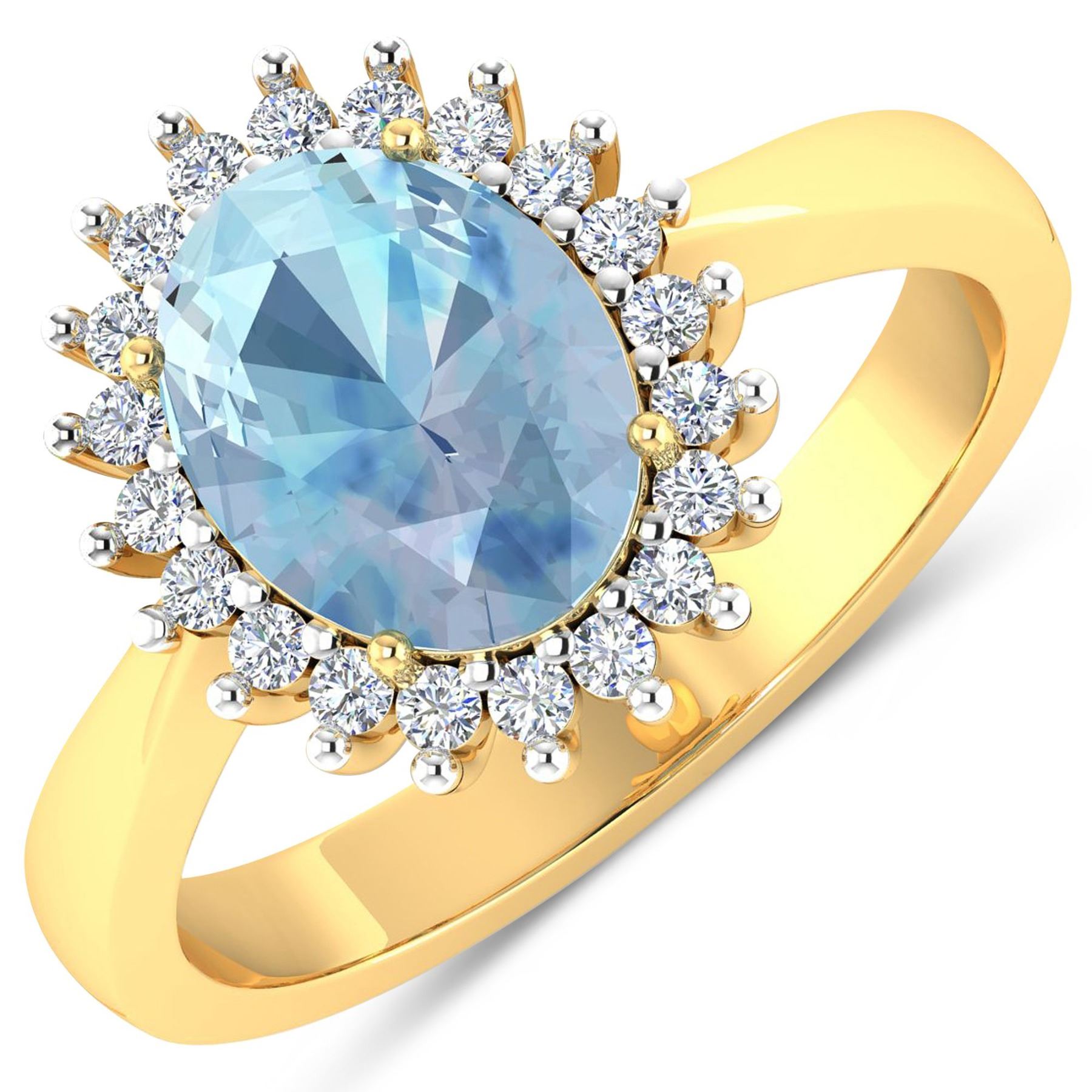 14KT Yellow Gold 0.96ct Aquamarine and Diamond Ring