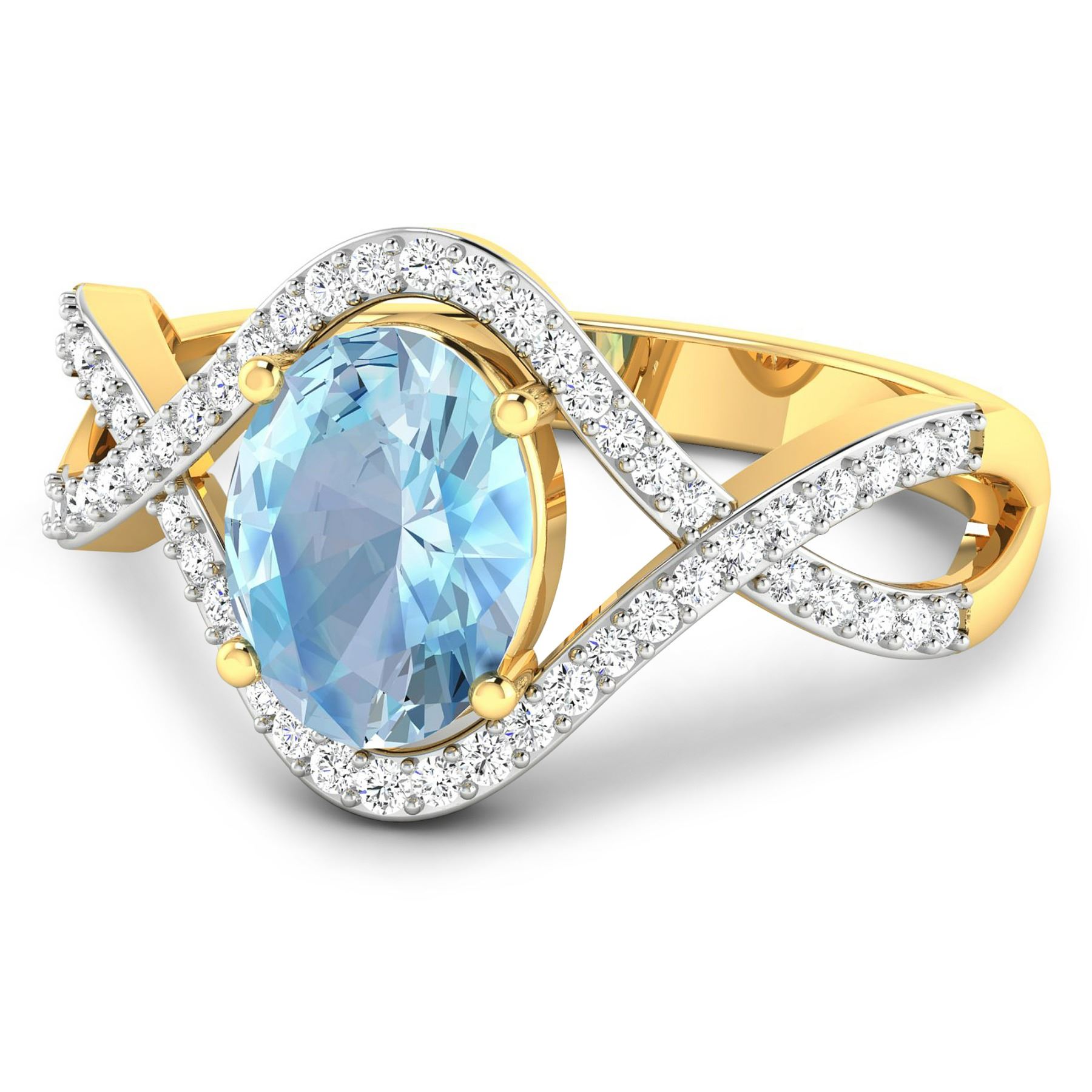 Aquamarine (AA+) Oval 8x6mm - 1Pc + White Diamond F/C Round 1.00mm - 52Pcs ( White Pan Rhodium ) ( I1-I2/I color ) Total weight of gemstone is 0.96cts. Total Diamond weight is 0.24cts. Total weight of this ring is 2.75 grams. Ring size 7.