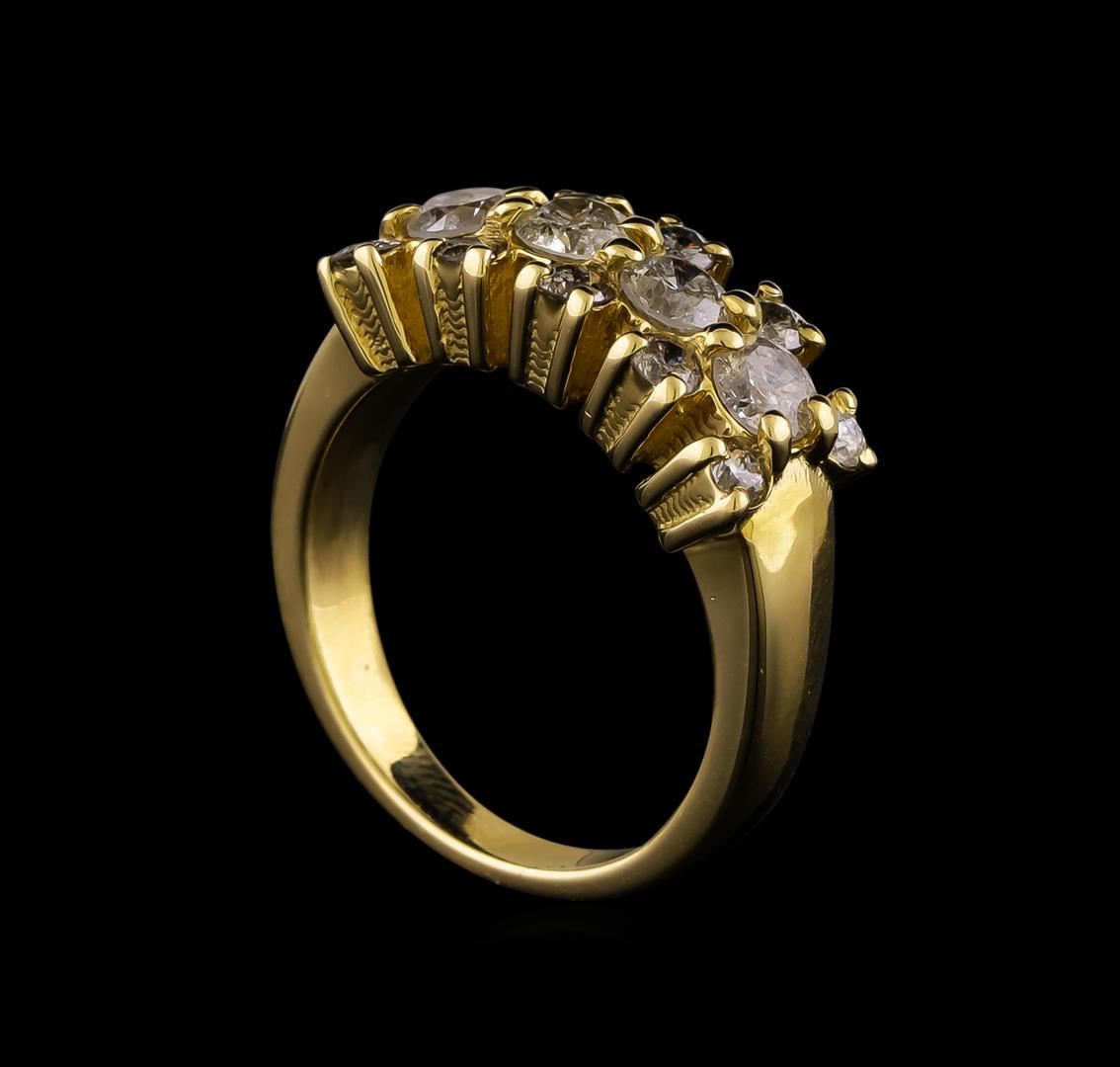 One electronically tested 14KT yellow gold ladies combination cast & assembled diamond ring with a bright polish finish. Identified with markings of "14K". Condition is new. Containing: Four prong set round brilliant cut diamonds, measuring 3.50 - 3.50 x 2.10mm (depth est.) approximate total weight of 4 Stones = 0.63ct. Clarity: I-2. Color: K, Cut is Good. Ten prong set round brilliant cut diamonds, measuring 2.10 - 2.10 x 1.26mm (depth est.) approximate total weight of 10 Stones = 0.34ct. Clarity: I-1 to I-2. Color: K - L, Cut is Good. All diamonds are graded in the mounting, unless otherwise stated. Total Weight of Diamonds 0.97ct. Total Weight of Ring 6.50 grams. GGL Appraised at $4,415.00.