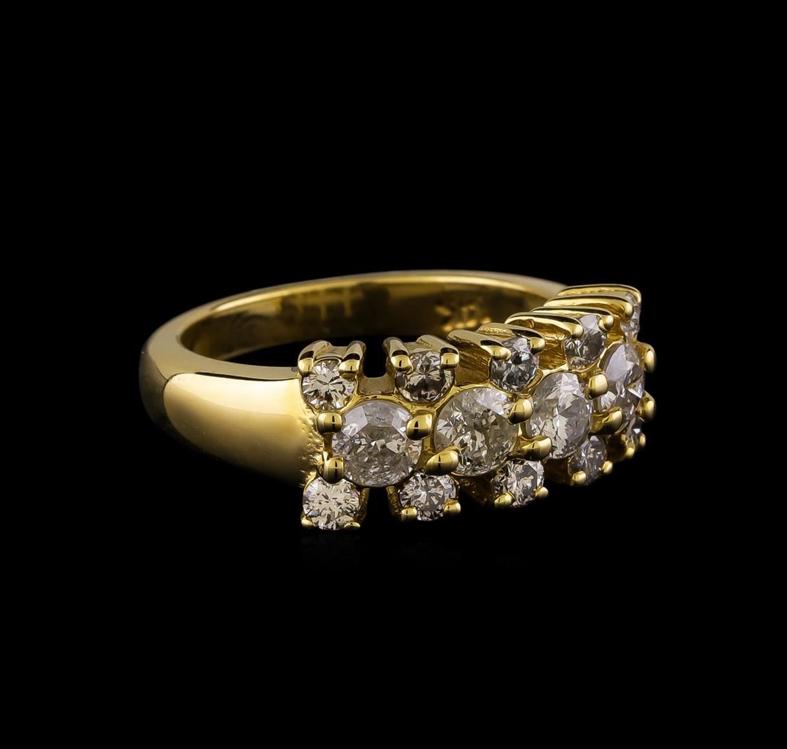 One electronically tested 14KT yellow gold ladies combination cast & assembled diamond ring with a bright polish finish. Identified with markings of "14K". Condition is new. Containing: Four prong set round brilliant cut diamonds, measuring 3.50 - 3.50 x 2.10mm (depth est.) approximate total weight of 4 Stones = 0.63ct. Clarity: I-2. Color: K, Cut is Good. Ten prong set round brilliant cut diamonds, measuring 2.10 - 2.10 x 1.26mm (depth est.) approximate total weight of 10 Stones = 0.34ct. Clarity: I-1 to I-2. Color: K - L, Cut is Good. All diamonds are graded in the mounting, unless otherwise stated. Total Weight of Diamonds 0.97ct. Total Weight of Ring 6.50 grams. GGL Appraised.