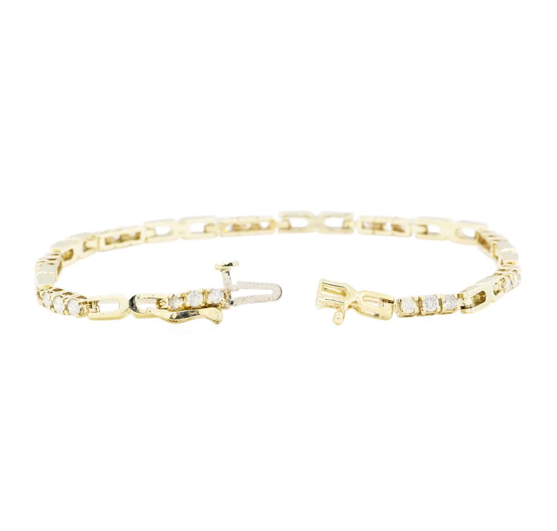 One bracelet with a plunger clasp with a figure eight safety featuring: 14KT yellow gold weighing 8.1 grams containing diamonds weighing 1.00ctw. The bracelet measures seven inches in length.