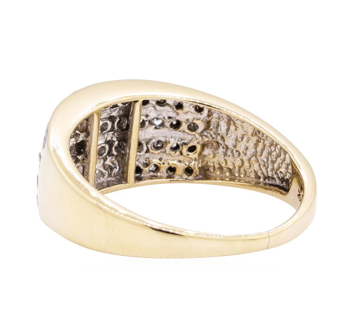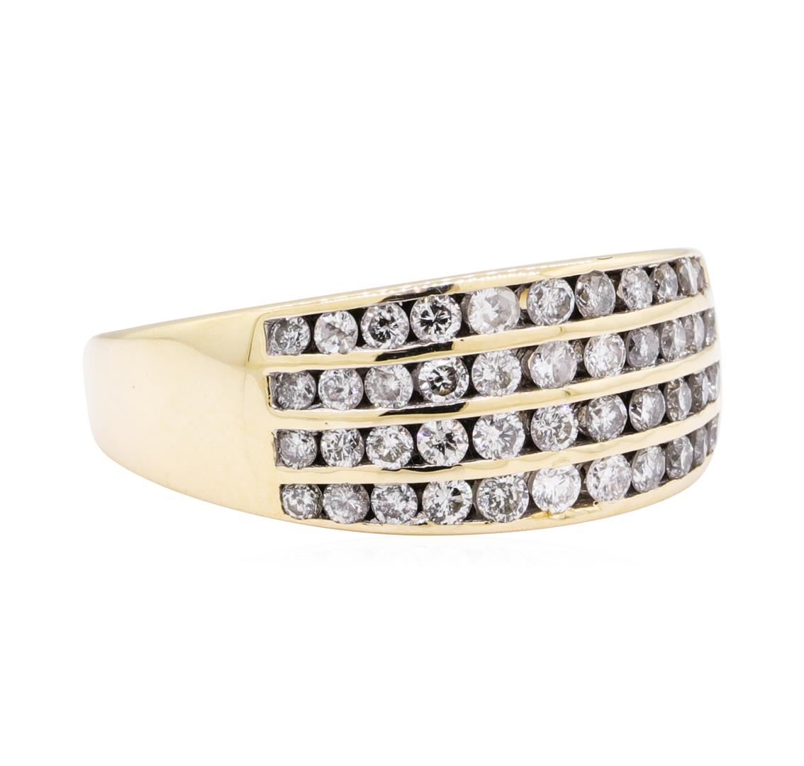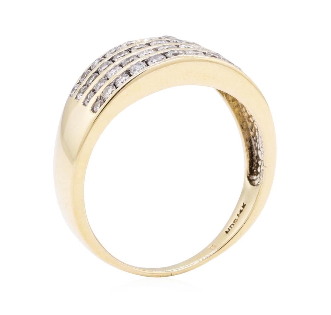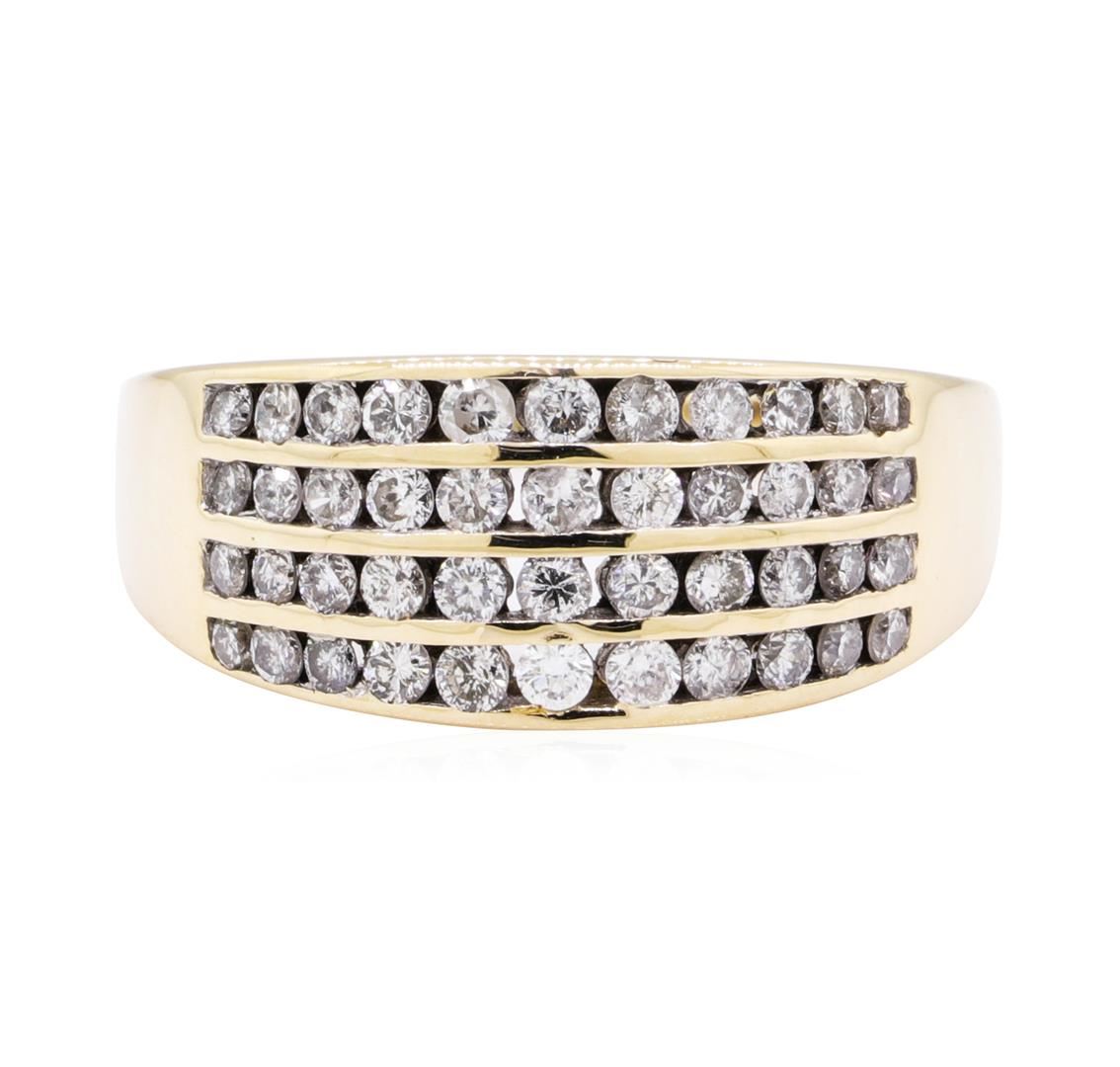 One four row wide band ring featuring: 14KT yellow gold weighing 5.5 grams containing diamonds weighing 1.00ctw. The ring is a size 9.