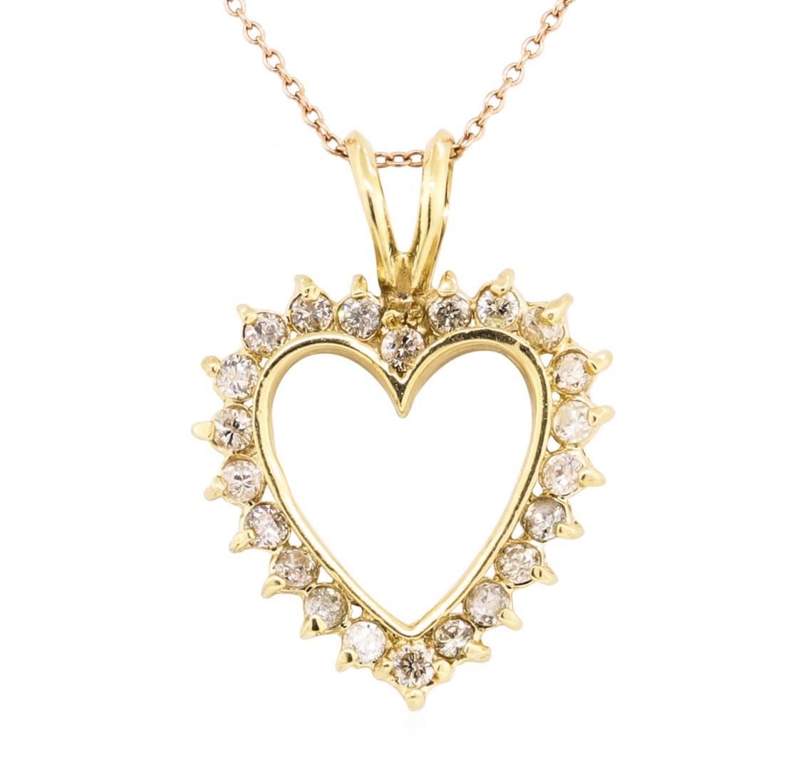 14KT Yellow Gold 1.00 ctw Diamond Heart Shaped Pendant with 14KT Rose Gold Chain