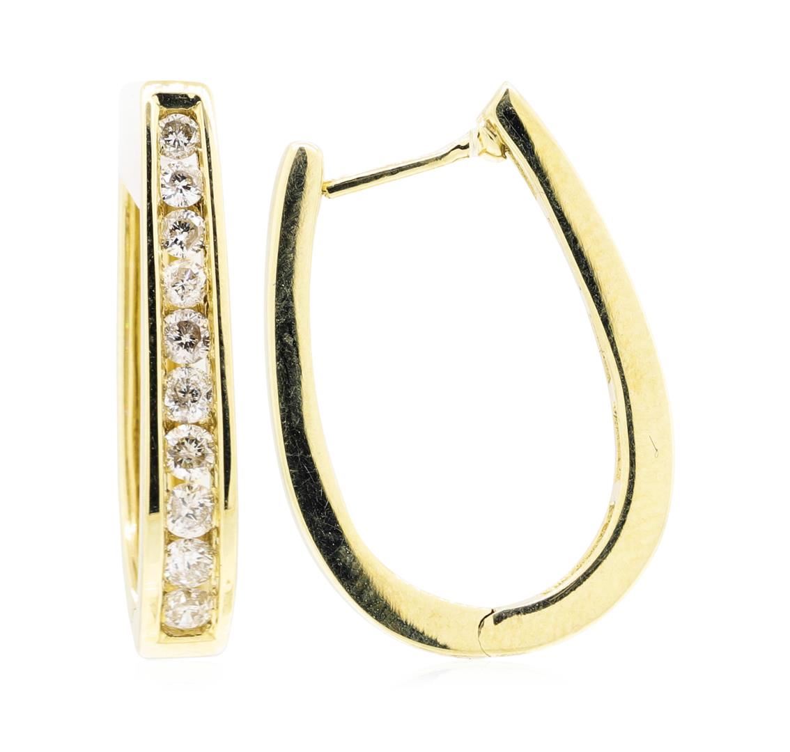 One pair of hoop earrings featuring: 14KT yellow gold weighing 7.7 grams containing diamonds weighing 1.00ctw.