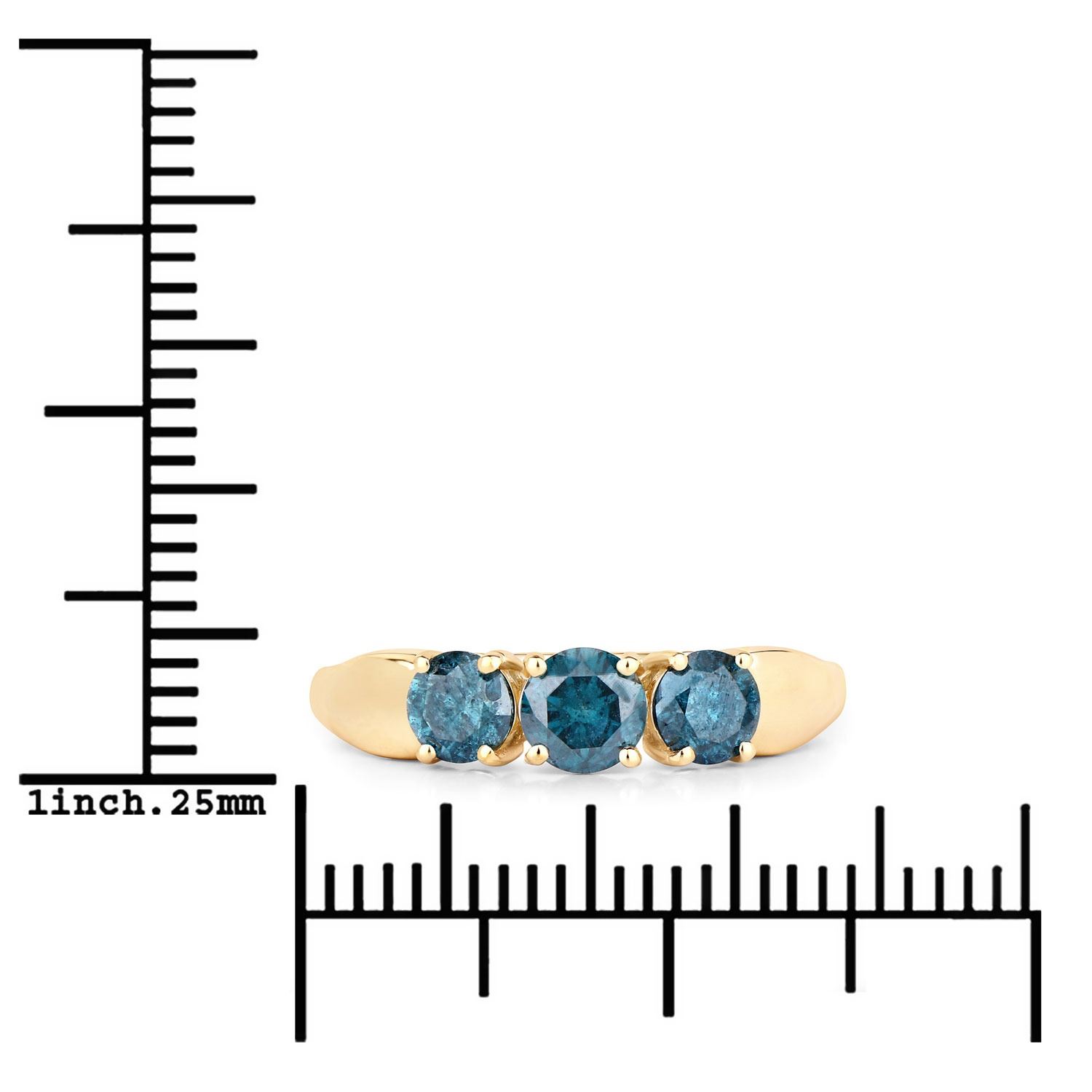 Blue Diamond Round/4.40mm - 1/0.38 ctw Prong Setting Natural Irradiated E + Blue Diamond Round/4.10mm - 2/0.62 ctw Natural Irradiated E SI-2. Ring size 7. Total weight of 2.05 grams.