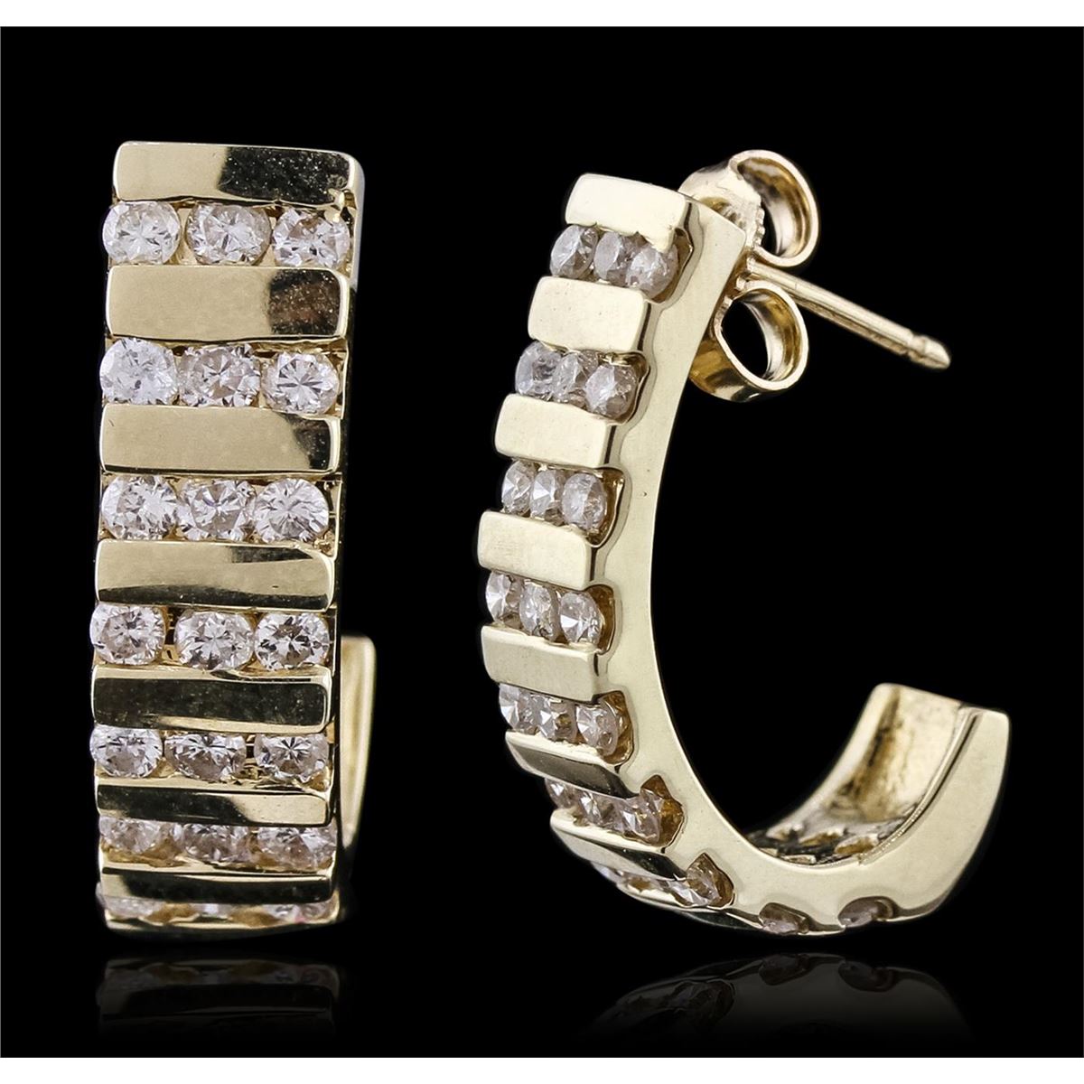One pair of hoop earrings featuring: 14KT Yellow Gold with a total weight of 8.80 grams, and Diamonds with a total weight of 1.00ctw.