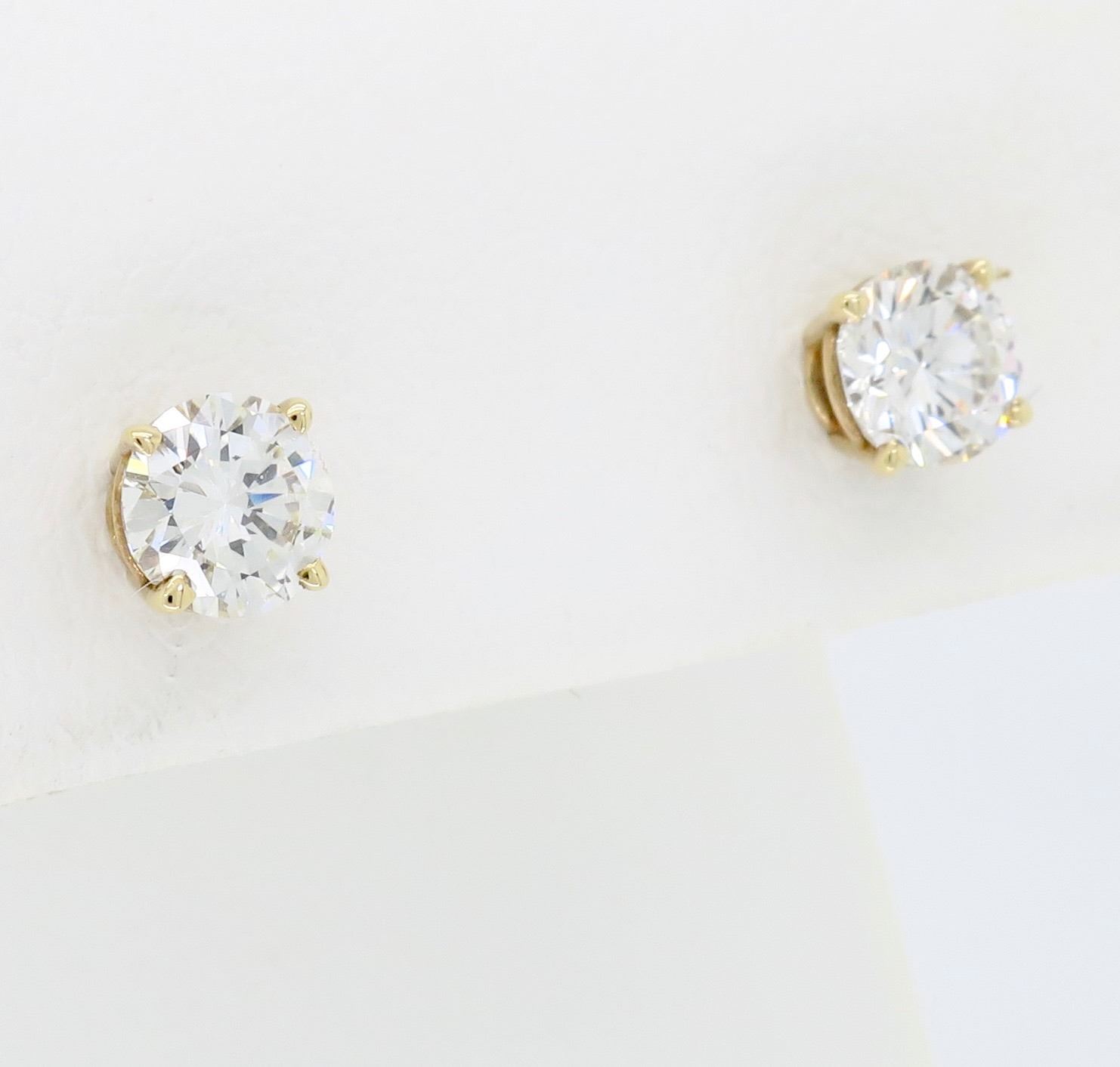 (2) Round Diamonds with a total weight of 1.00cts with a color of H and clarity of SI-2. Total weight of these earrings are 1.0 grams.